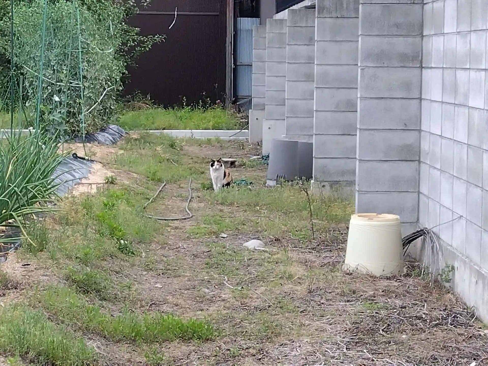 寺の手前の畑に三毛猫が佇んでた🐱