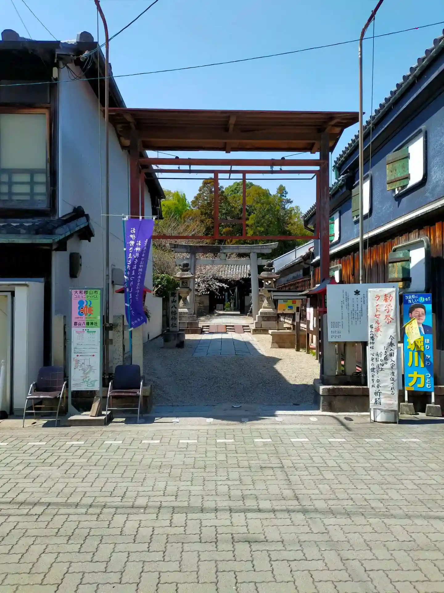 大和郡山の八幡さまです。柳町商店街の金魚ロード沿いに鎮座されています。拝殿にグローブが掲げられてい…