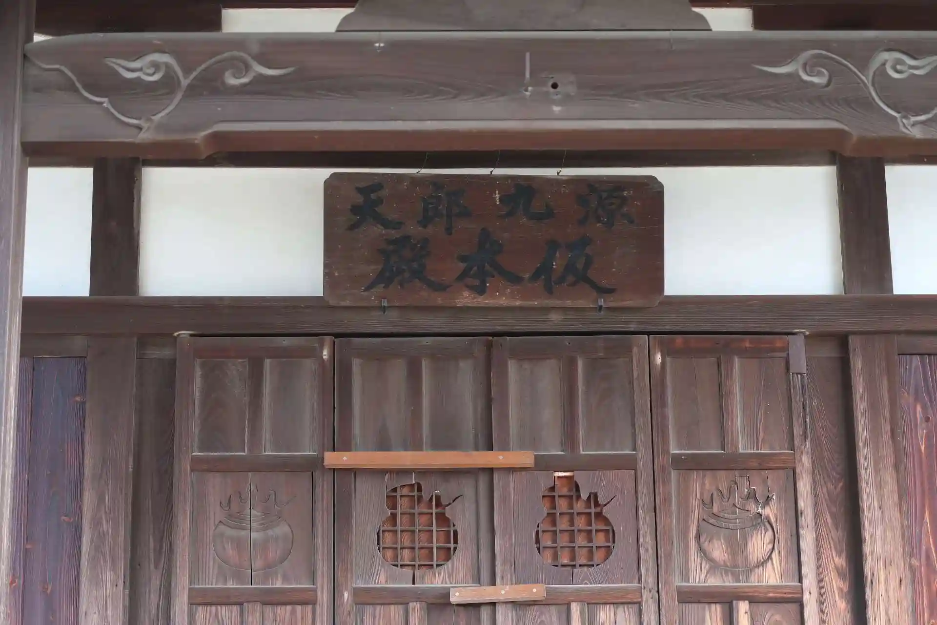 また、洞泉寺の宝誉上人の夢枕に源九郎狐(白狐)が現れ、郡山城の巽(たつみ)に祀ってくれたら城の守護神になると告げられた事から宝誉上人は郡山城主の豊臣秀長に告げたと言われ、秀長は郡山城の鎮守として、場内の竜雲郭に祀ったと言われています。宝誉上人が自ら彫られた荼枳尼天が洞泉寺本堂の厨子に祀られています(拝観不可)。本堂に祀られる前は源九郎天 仮本殿に祀られていたとの事です。