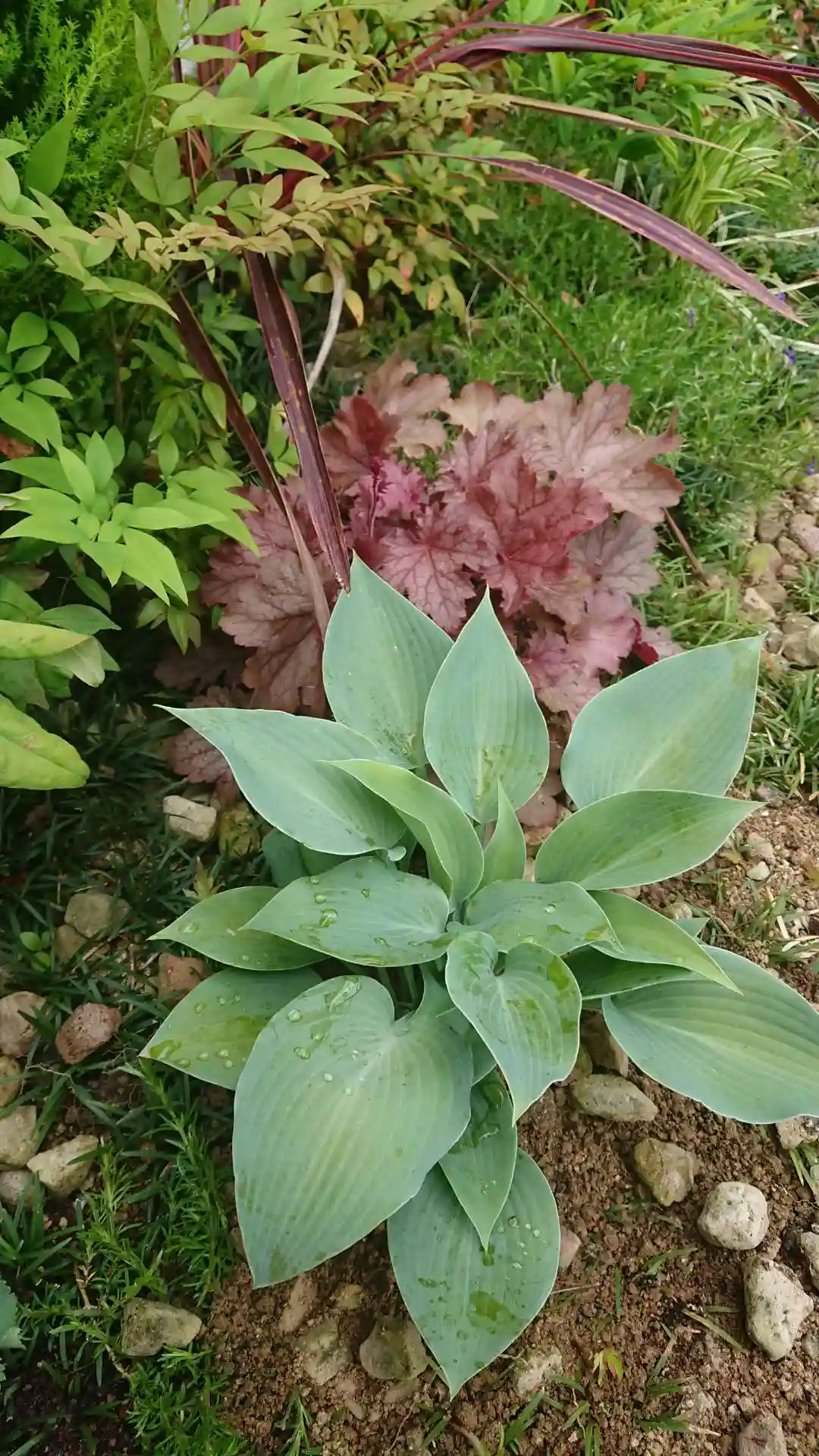 ホスタ(ギボウシ)、ヤブラン、ヒューケラ、南天、ハツユキカズラ、ヤツデ、ツワブキ等の花木が充実してまいりました🌿🍀