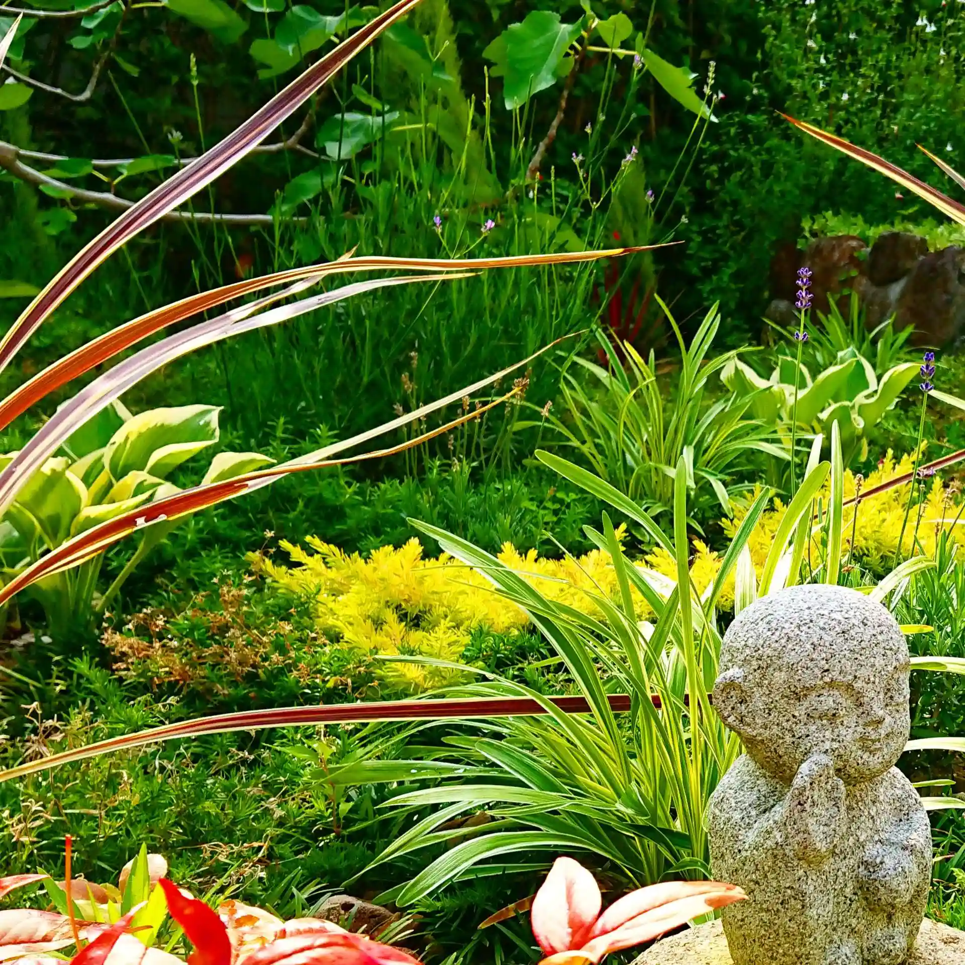 ギボウシ・ヤブラン・ハーブなどのローメンテナンスの多年草が夏の庭園樹木葬墓地の主役です🌿