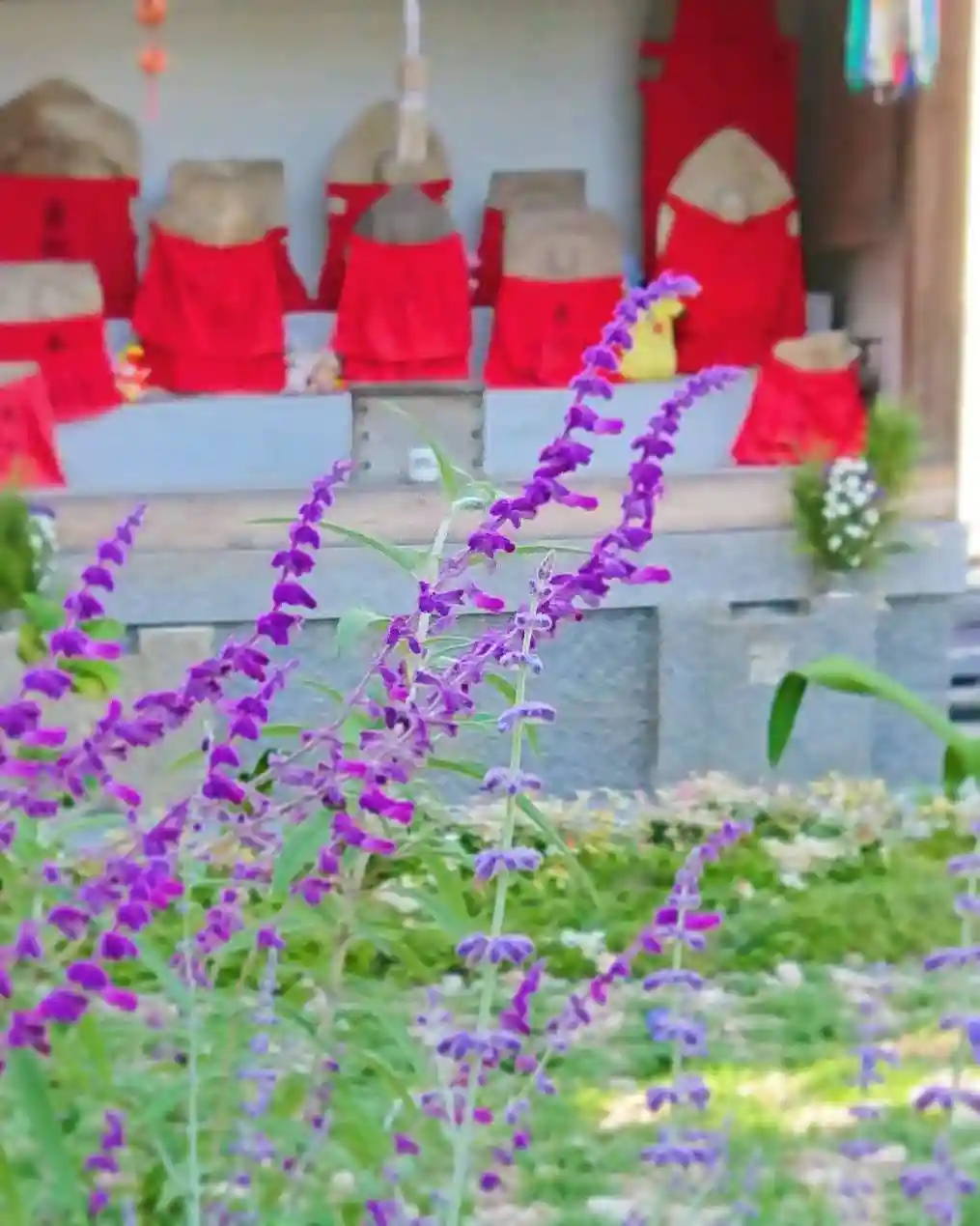 わらべ地蔵様の周りにはたくさんの多年草、宿根草を植栽しております🤗🌿