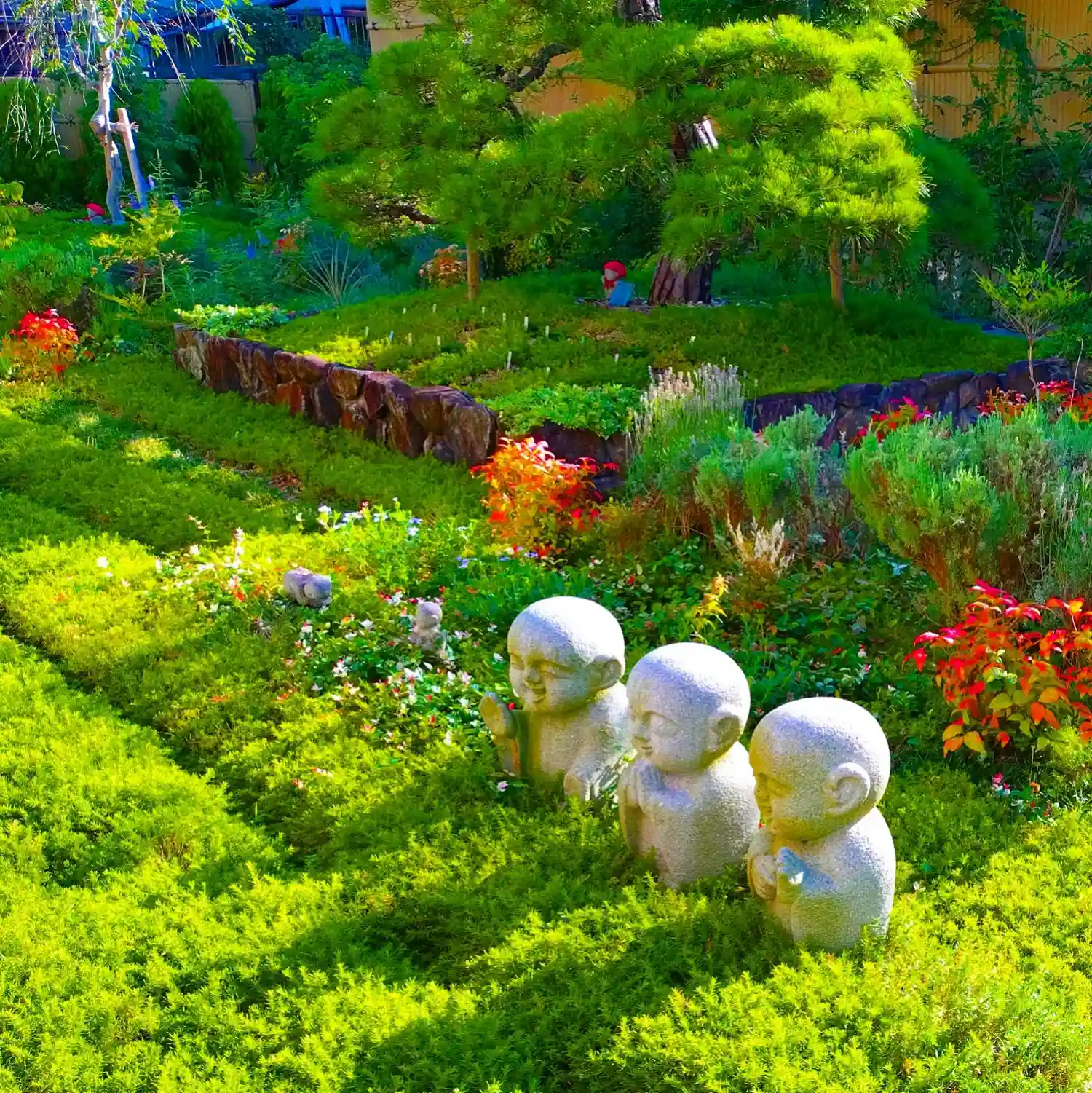 わらべ地蔵様と新緑のガーデン🤗🌿