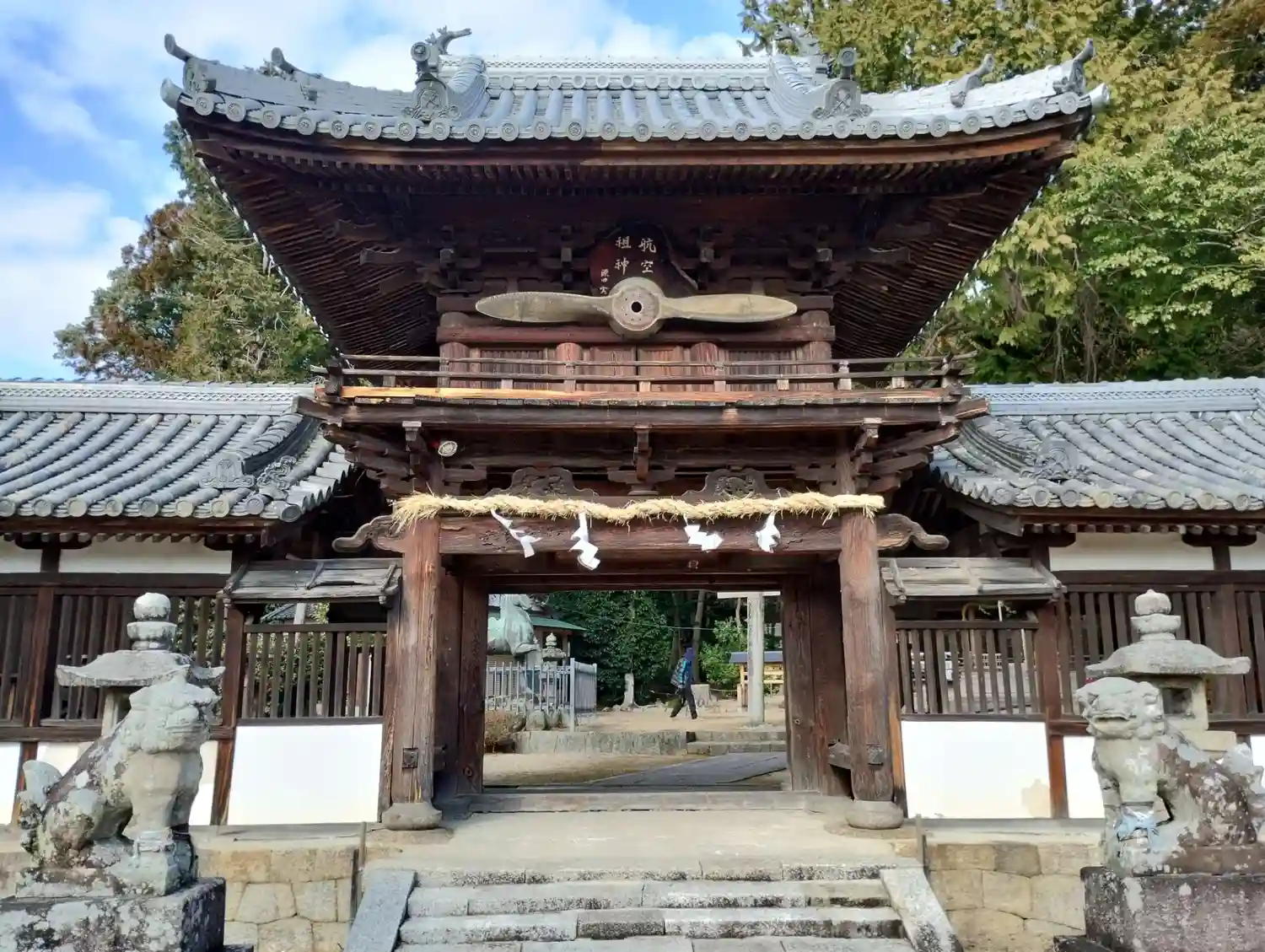 ウイキペディアによると、祭神である櫛玉饒速日命が天磐船に乗って空を飛んだという故事から、航空祖神…