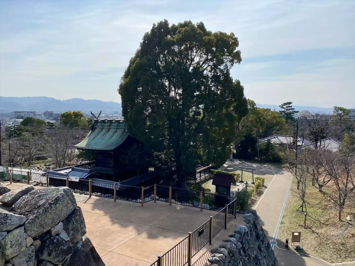 展望台から本殿を見下ろせます(罰あたり?)御神木の威厳がすごい。