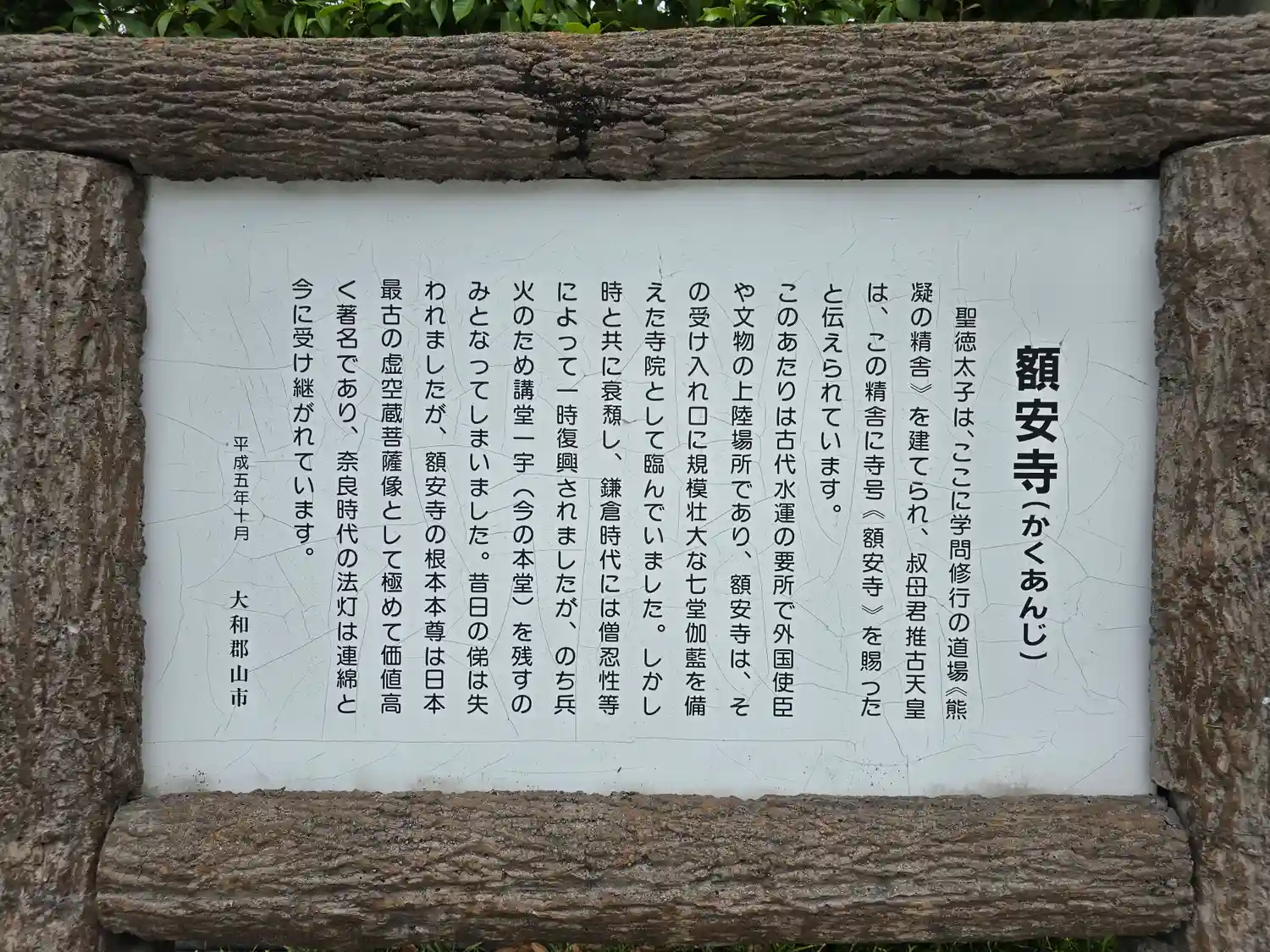 621年聖徳太子が建立した学問道場・熊凝精舎が始まりで、推古天皇から額安寺の寺号を賜ったと伝わる。…