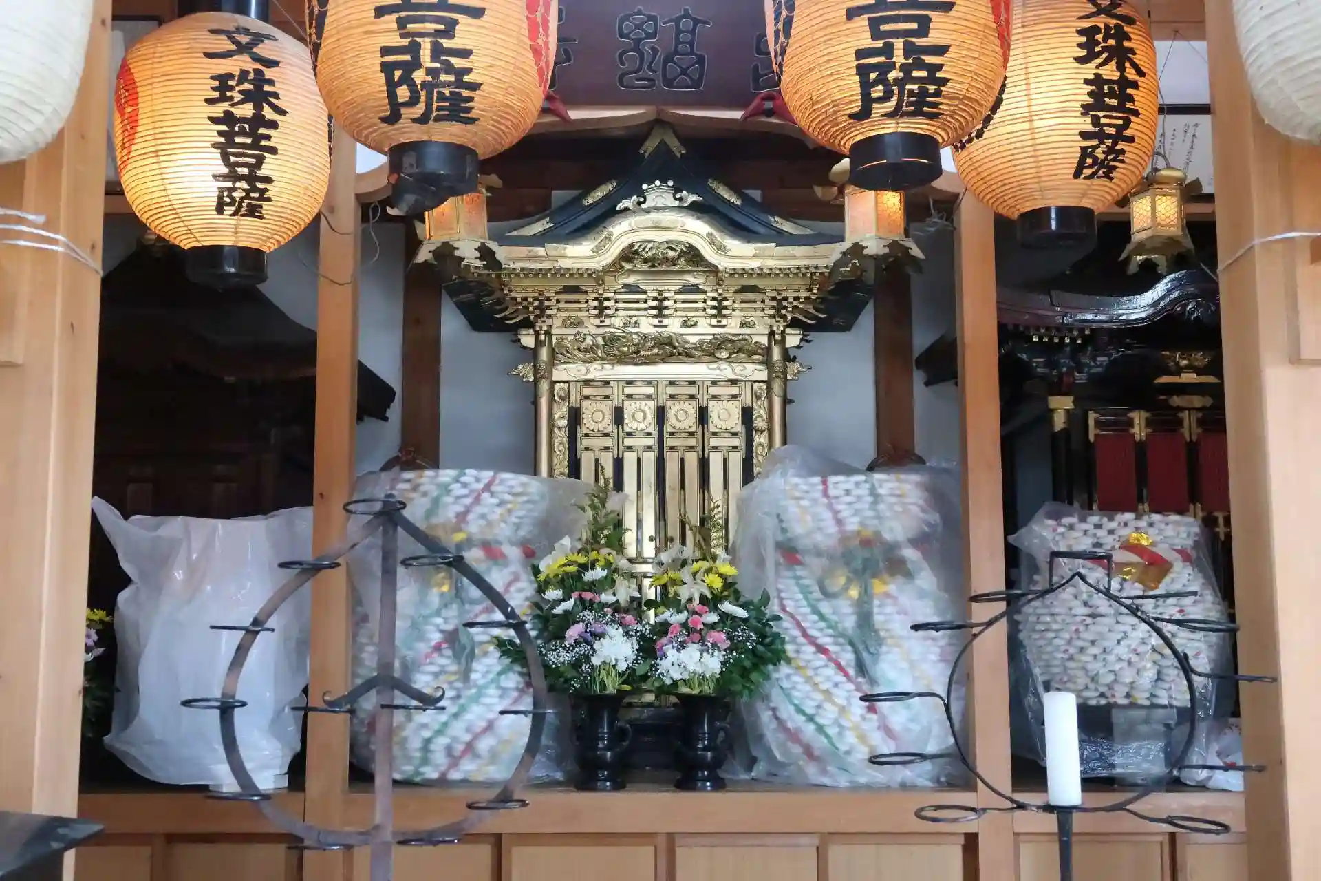 右側の厨子には?菩薩(写真NGでメモるのを失念してしまいました。こういう時に写真があると便利)、左側の厨子には文殊?菩薩のモノクロ写真だけが。昔、盗難に遭い戻って来ないため写真だけ飾ってあるとの事でした。何処にも罰当たりな奴が居るものです。