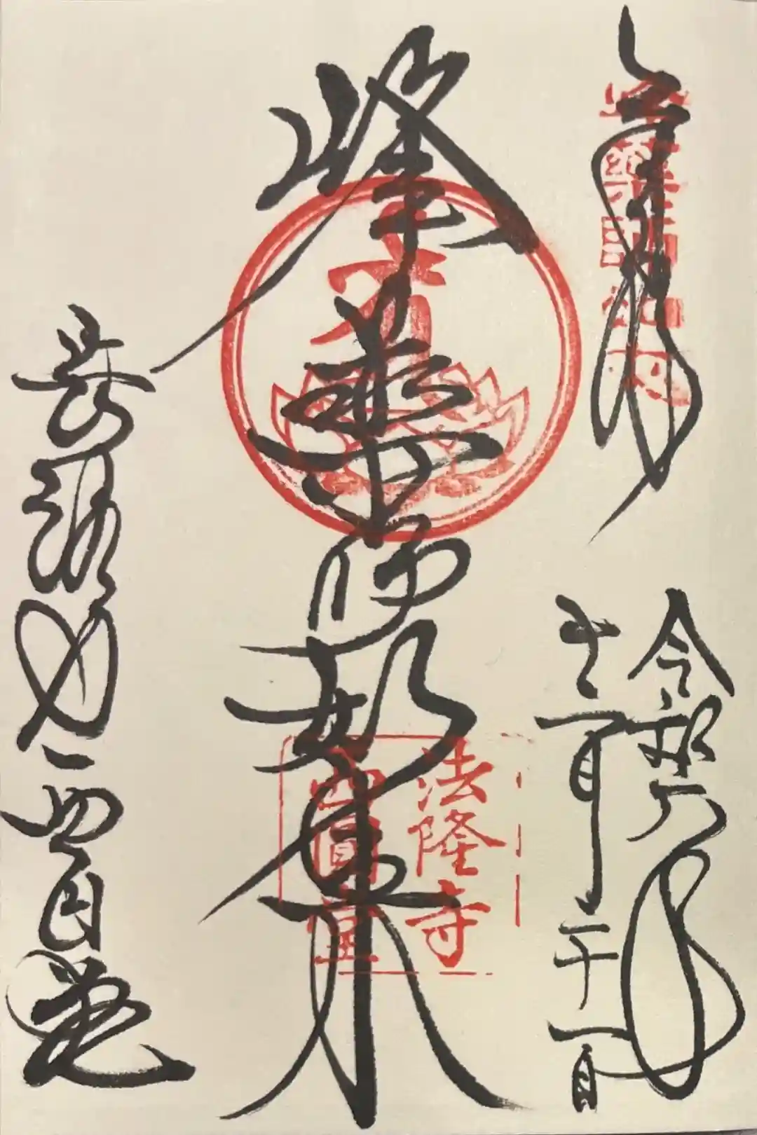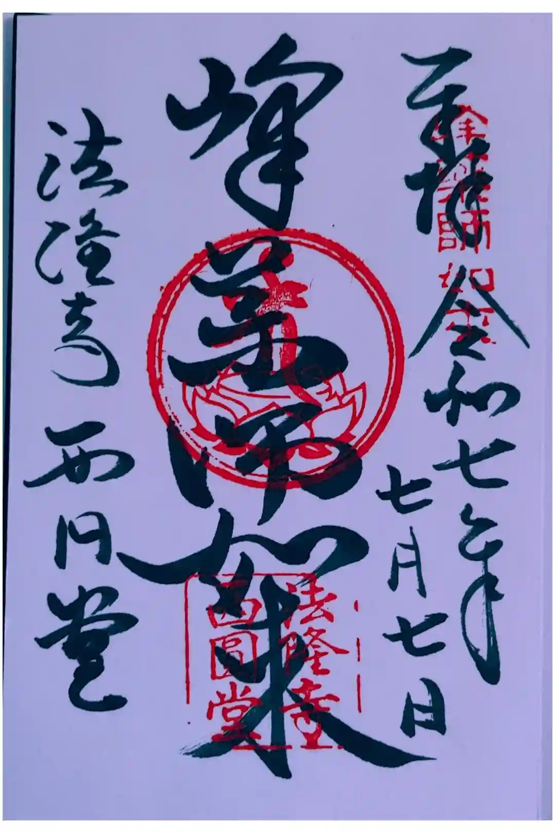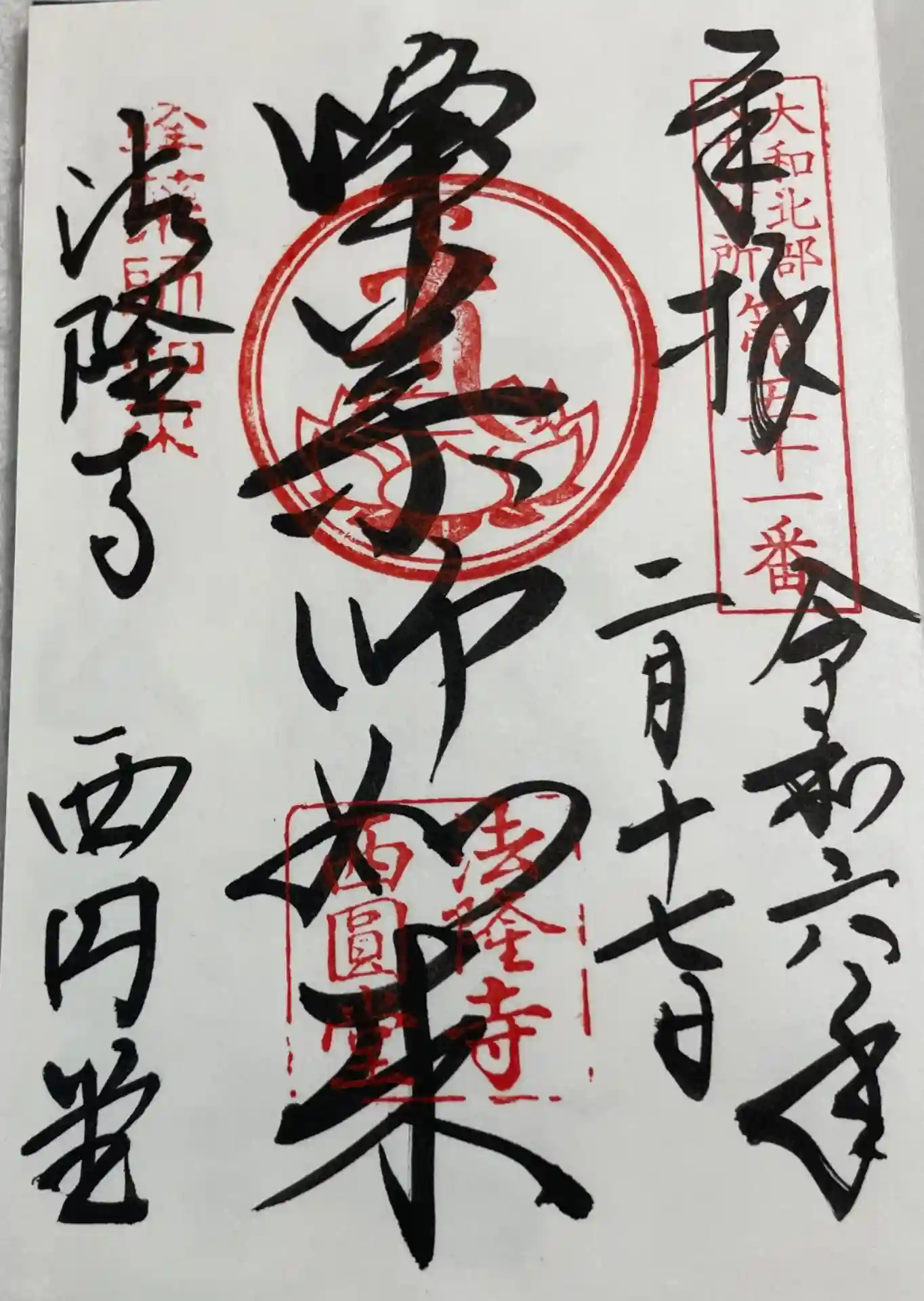 法隆寺西円堂さんの御朱印を直書きで拝受。