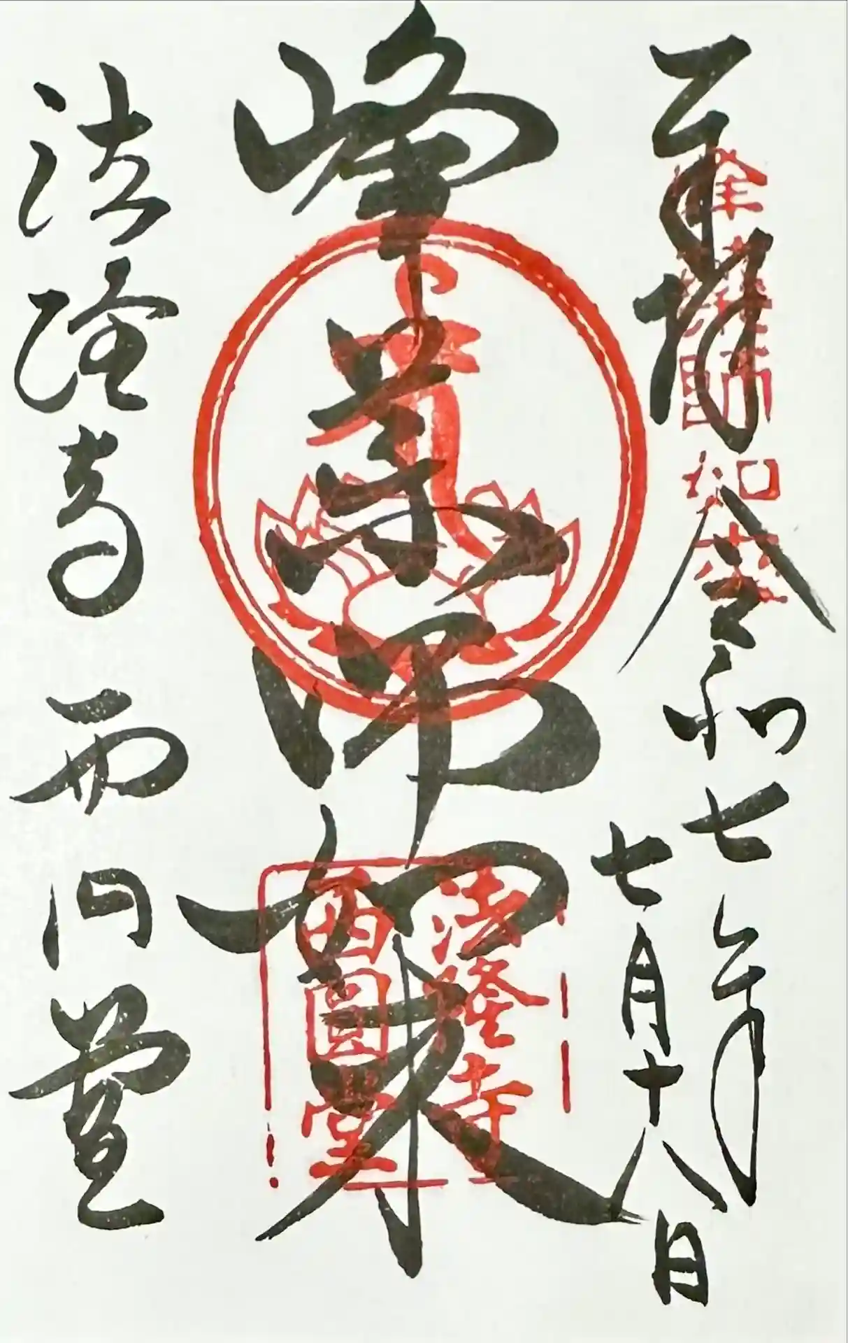 法隆寺西円堂さんの御朱印を直書きで拝受。