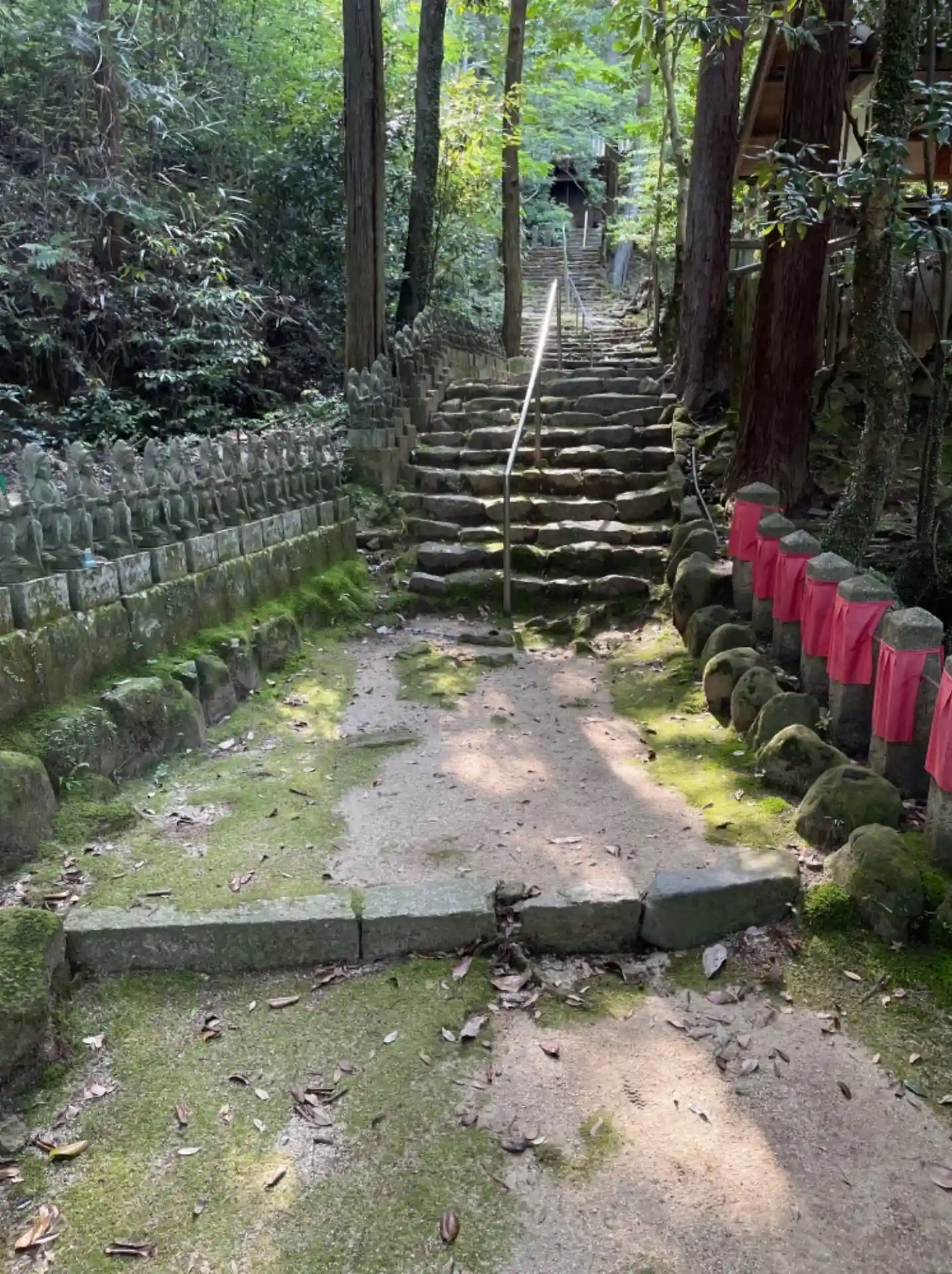 本堂への石段 役行者様がたくさん