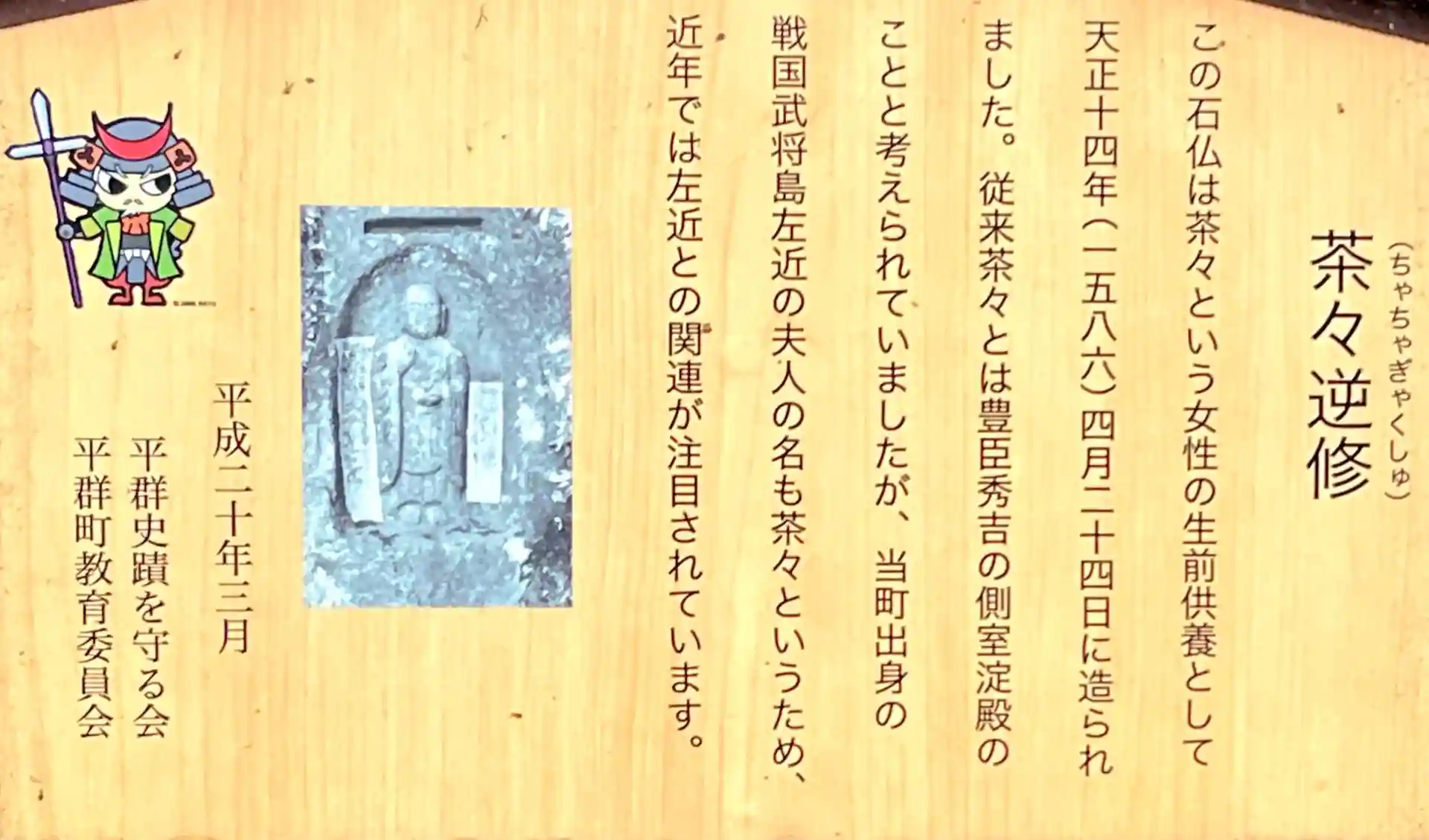 こちらには、嶋左近公の室の茶々殿の生前供養仏の磨崖仏があります。左近公は石田三成公の重臣で関ヶ原の合戦で討死したという武将ですね。