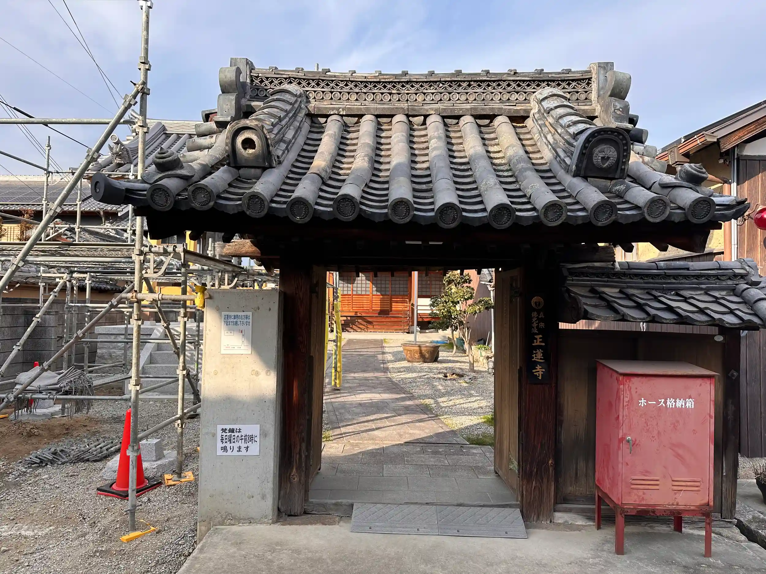 真宗仏光寺派のお寺です、鐘楼を新しくするための工事をされていました