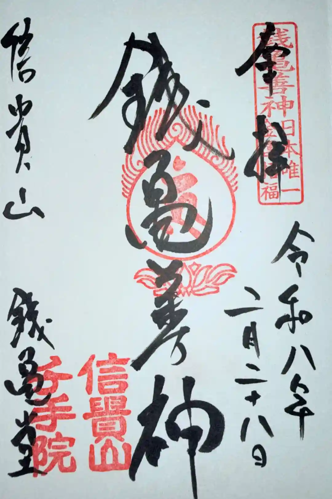 銭亀善神自身が亀の姿なのかと思っていたが、千手院によればそうではない。亀はあくまで彼の乗り物だ。HPによれば、千手院のトップが大峰山で瞑想をしていると、夢の中に彼が現れ告げた。