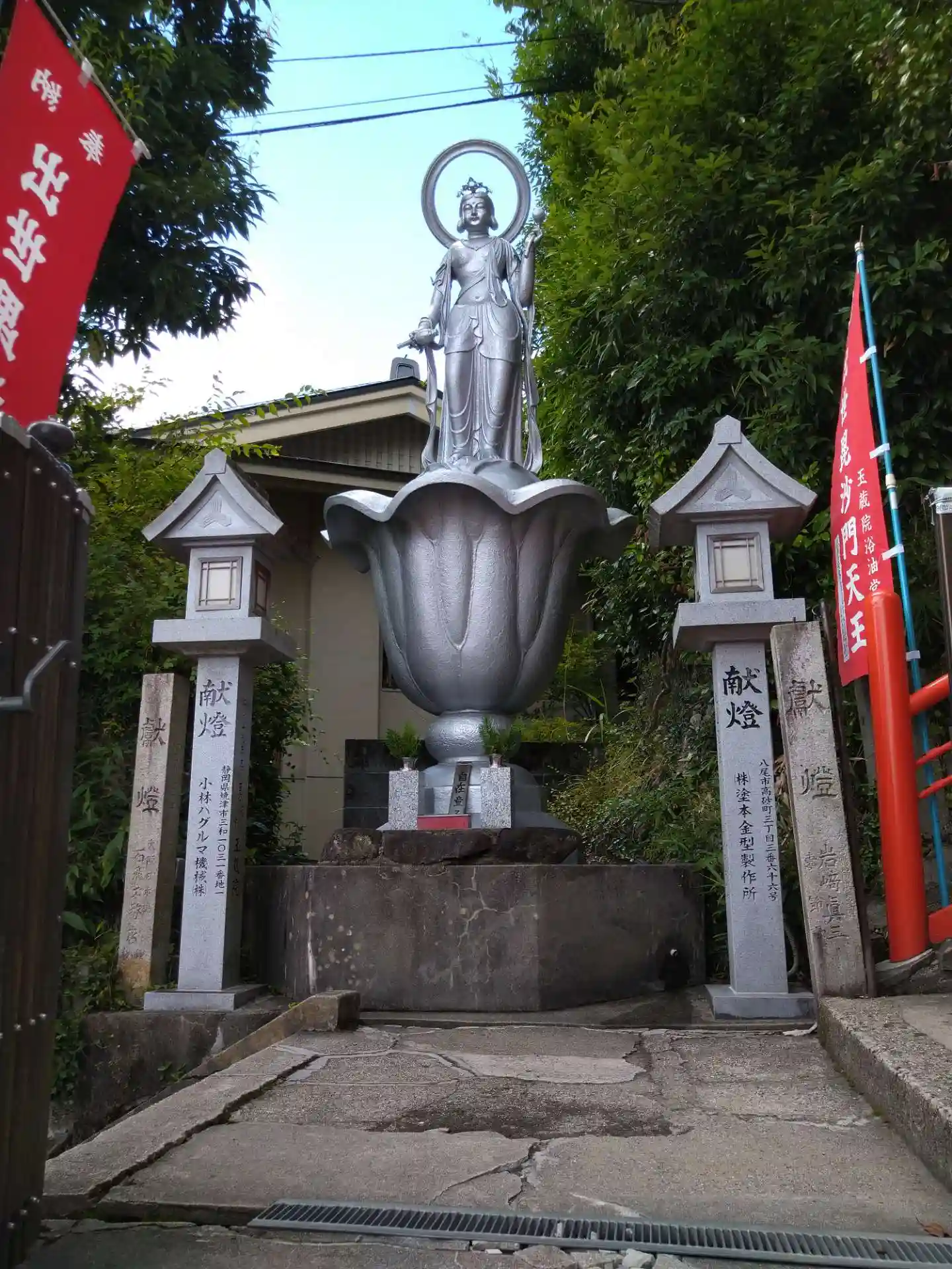 成福院とのあいだには旗が一杯。