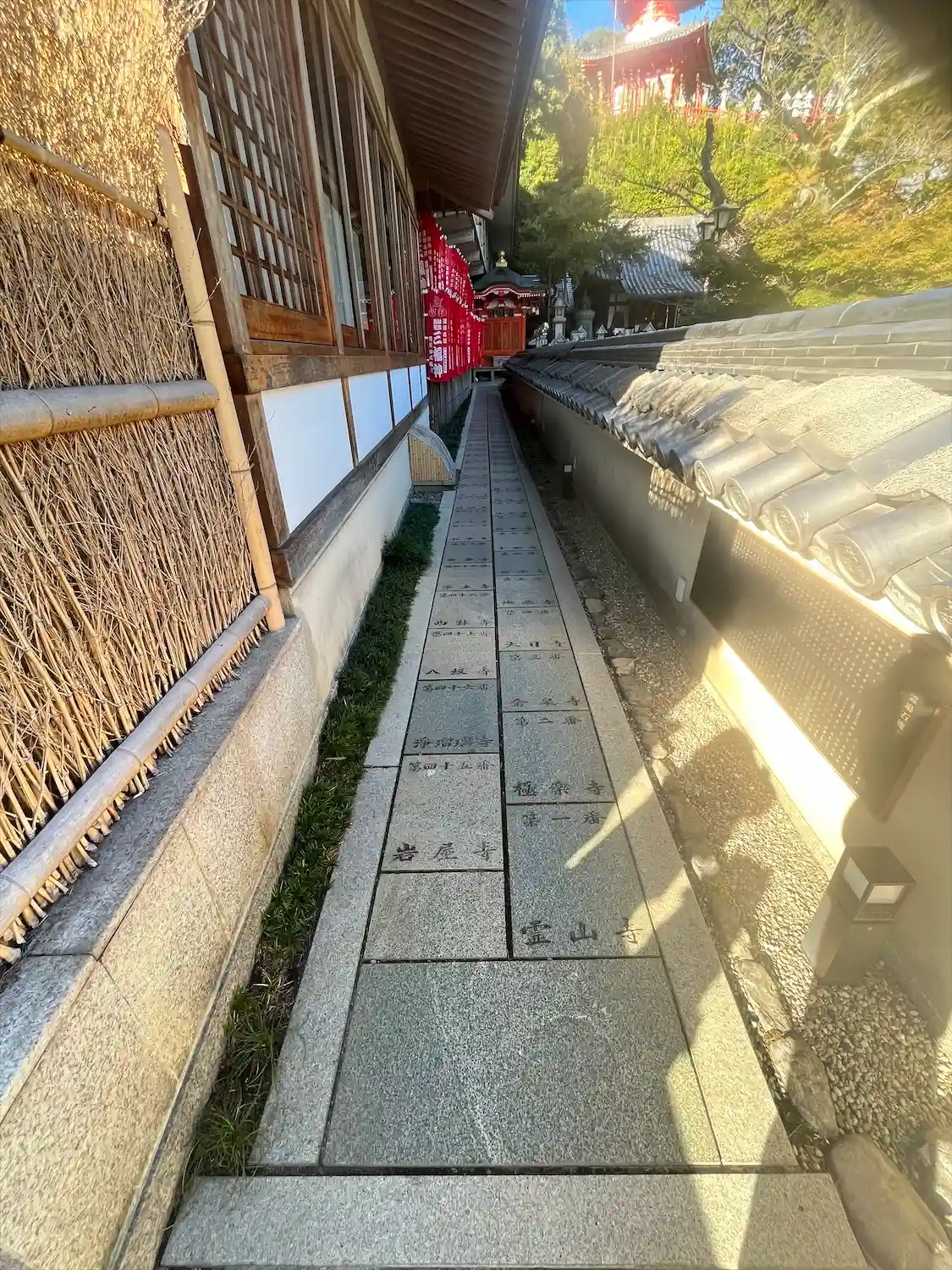 融通堂前の景色。本堂が少し見えます。