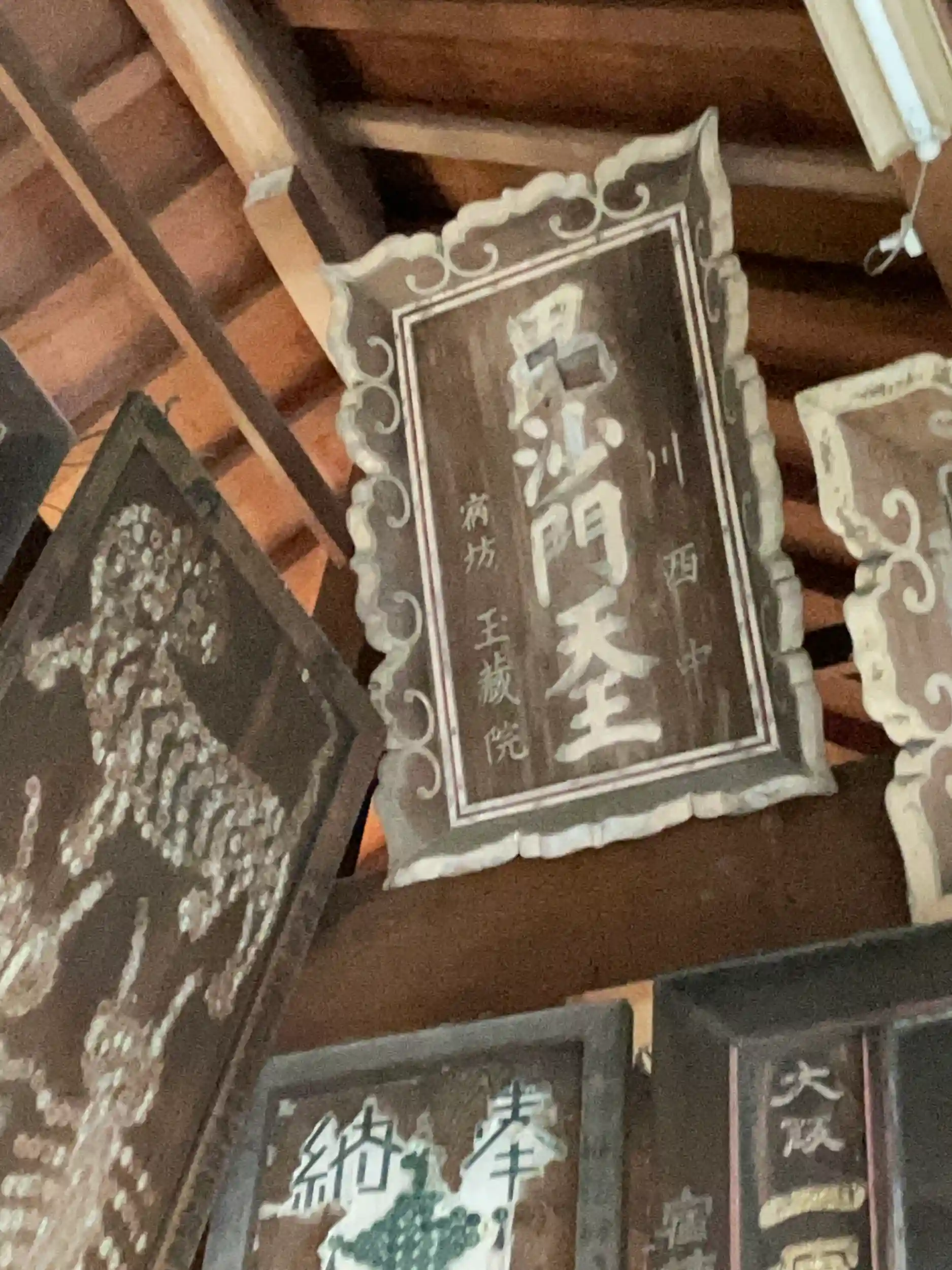 見上げると素晴らしい,歴史ある扁額の数々。