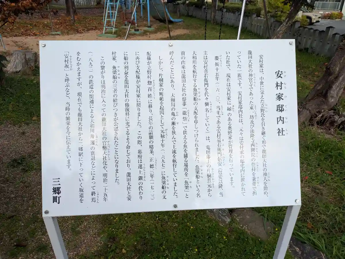 龍田大社に関係のある安村家の邸内にあったお社をこちらで祀られている。