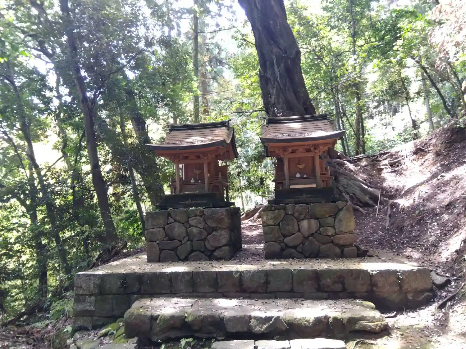 山の中にある神社で、森林浴ができる。…