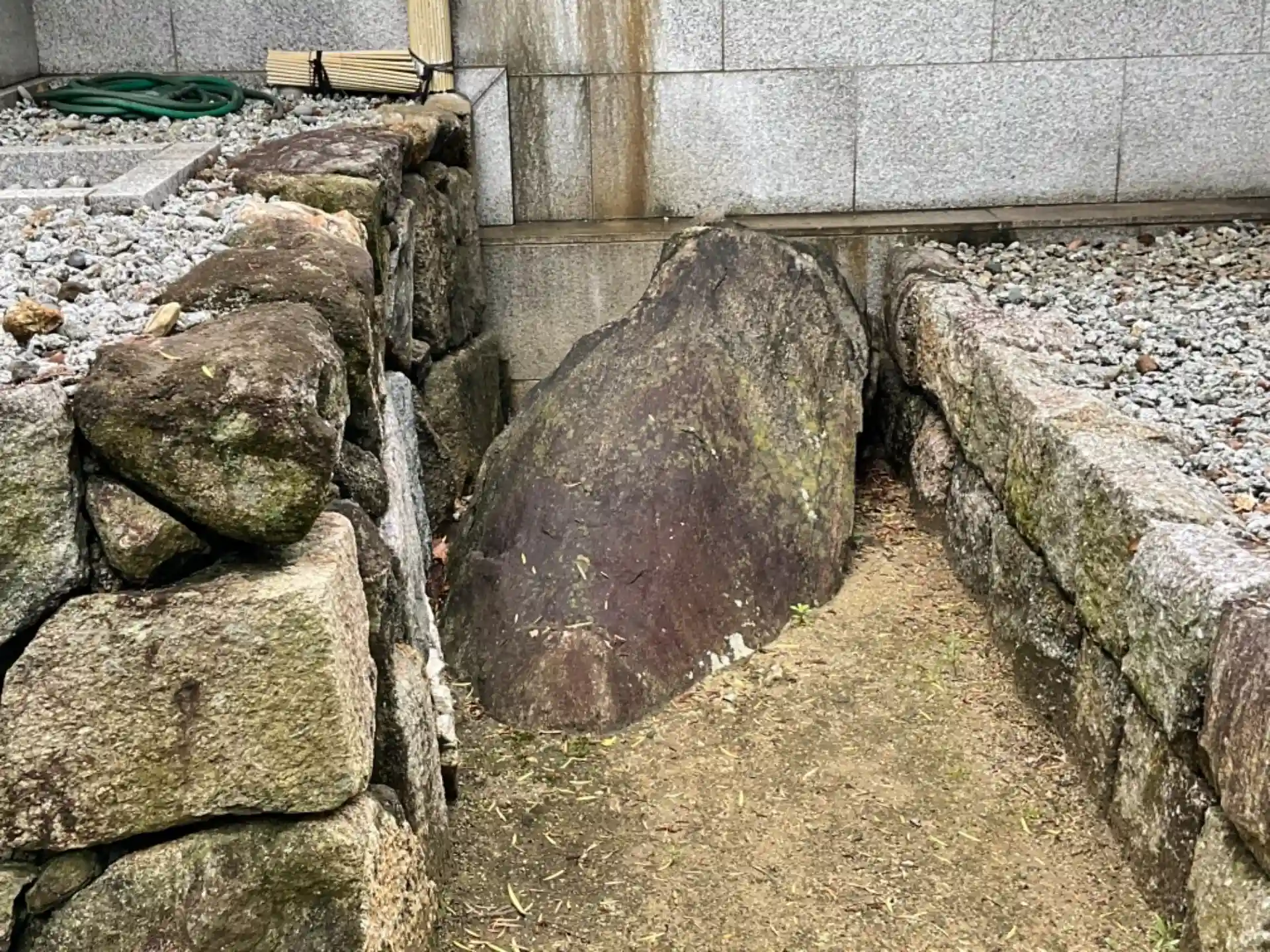 問答石。聖徳太子と達磨大師がここで詠み交わしたとされています。