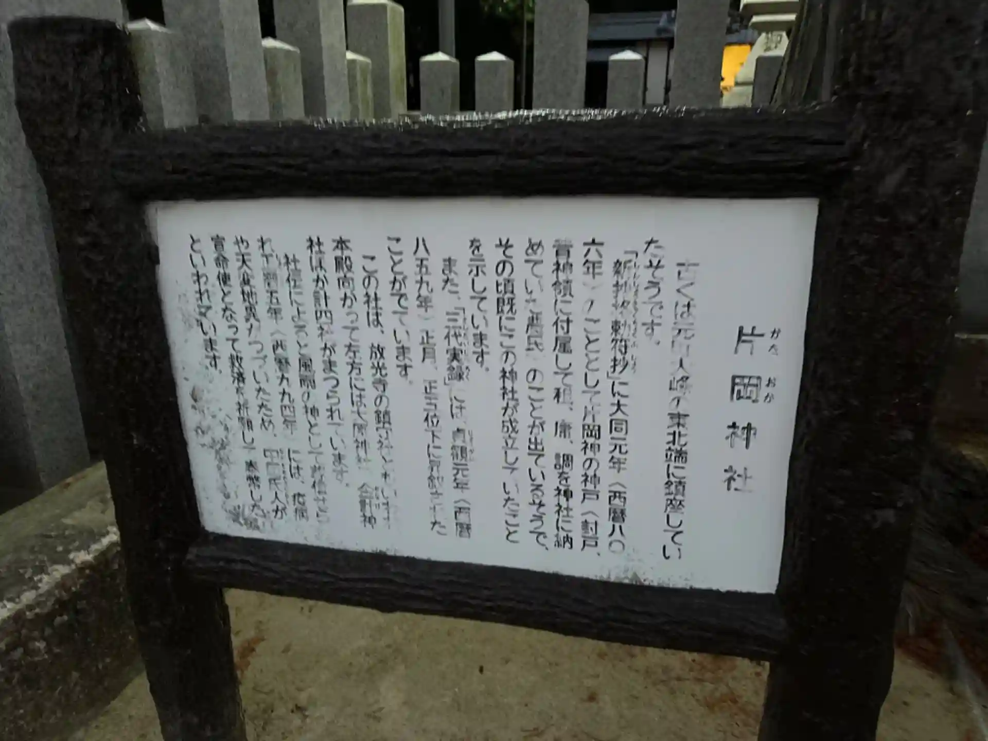 大和国葛下郡の名神大社「片岡坐神社」です。『日本三代実録』にて正五位の神階を授与されたとして記載されている国史現在社でもあり、風雨祈願の奉幣を受けていました。農耕文化だった日本において特に天候の祈願は大事とされていましたし、古くからその信仰を得ていたことが社格や神階などに現れていますね。