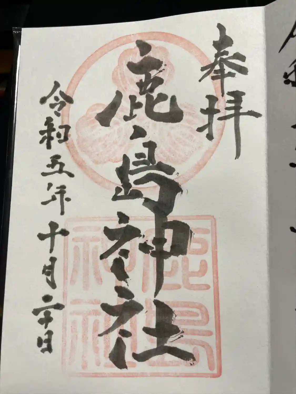 鹿島神宮の神使である鹿が描かれています。