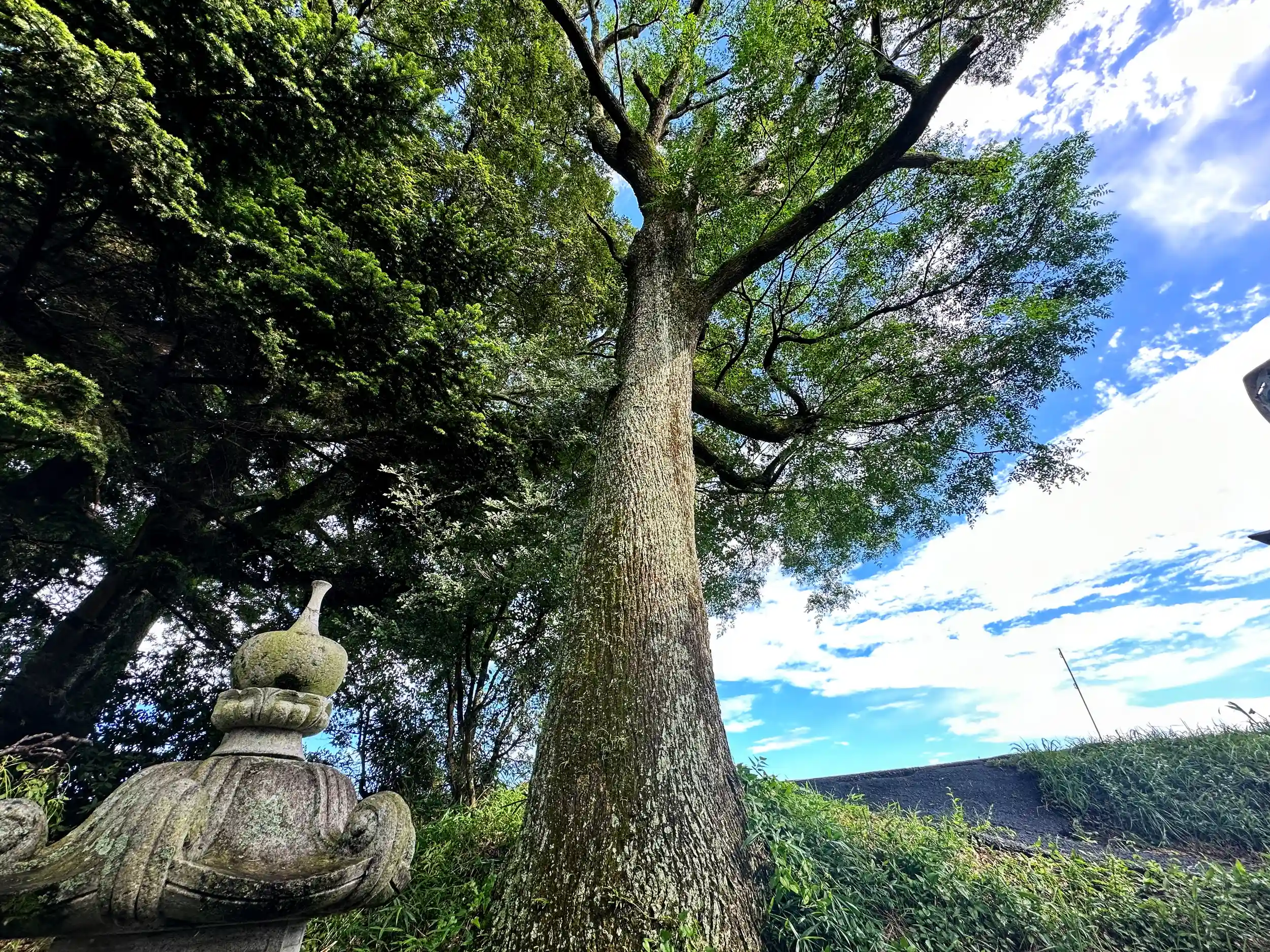 特に幹より途中で3本に分かれています、また鳥居横にも目を引く巨樹があります。ミニサイズの狛犬も可愛いです