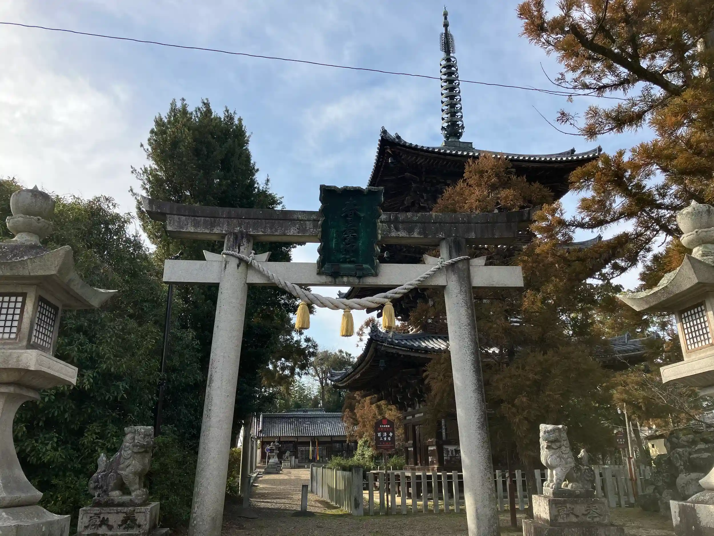 百済寺の隣に鎮座する。