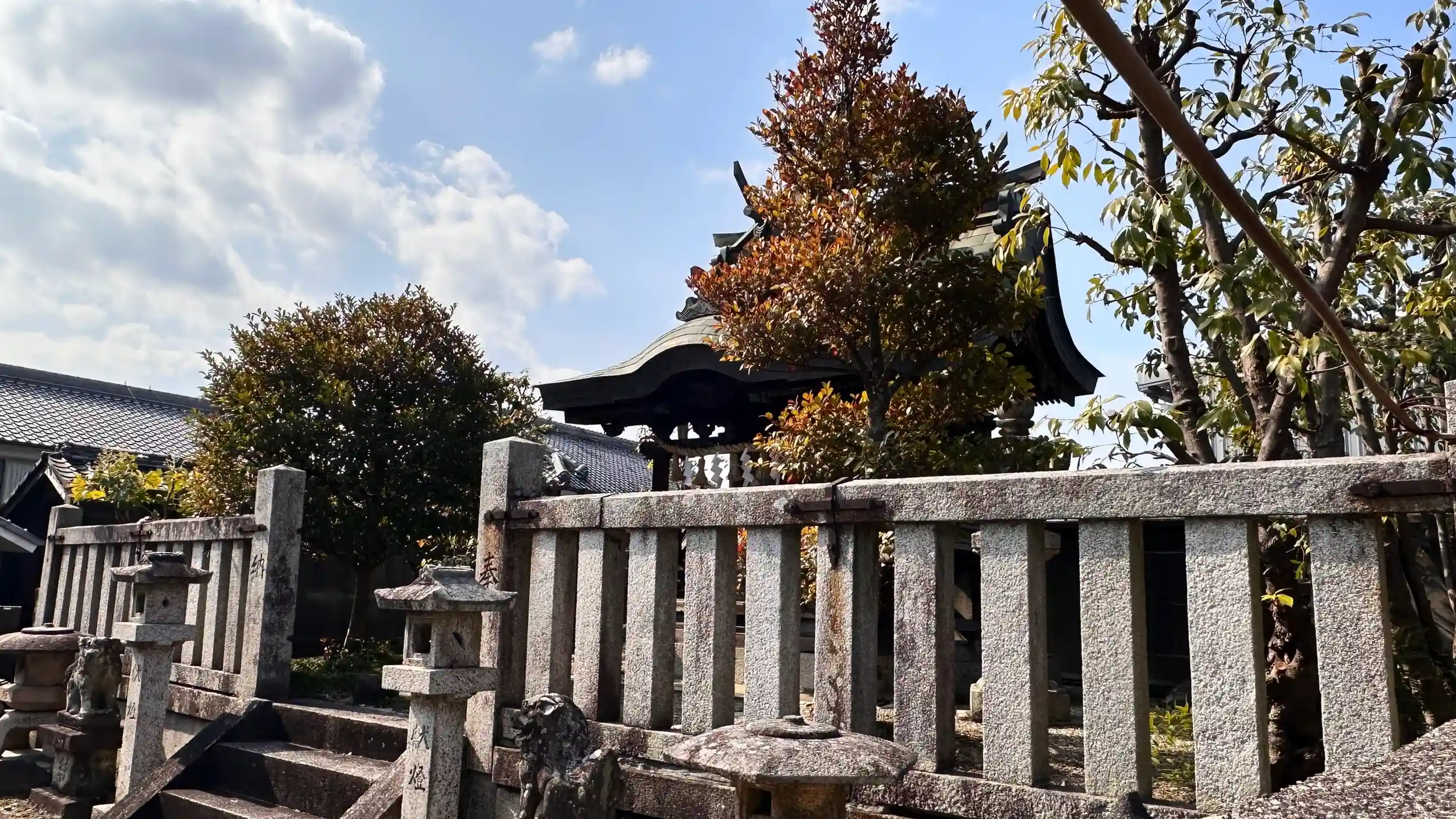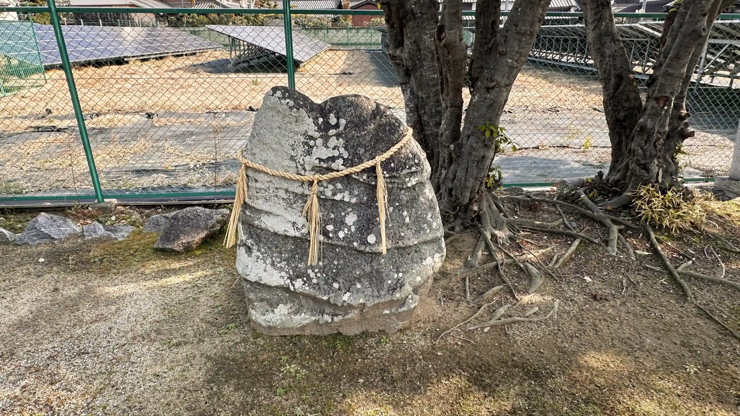 創建由緒は不明ですが、境内には注連縄が張られた磐があります。 雄略天皇の命で雷を捉えた小子部栖軽(チイサコベノスガル)が、その雷を縛り付けた磐であると伝わっているようです。