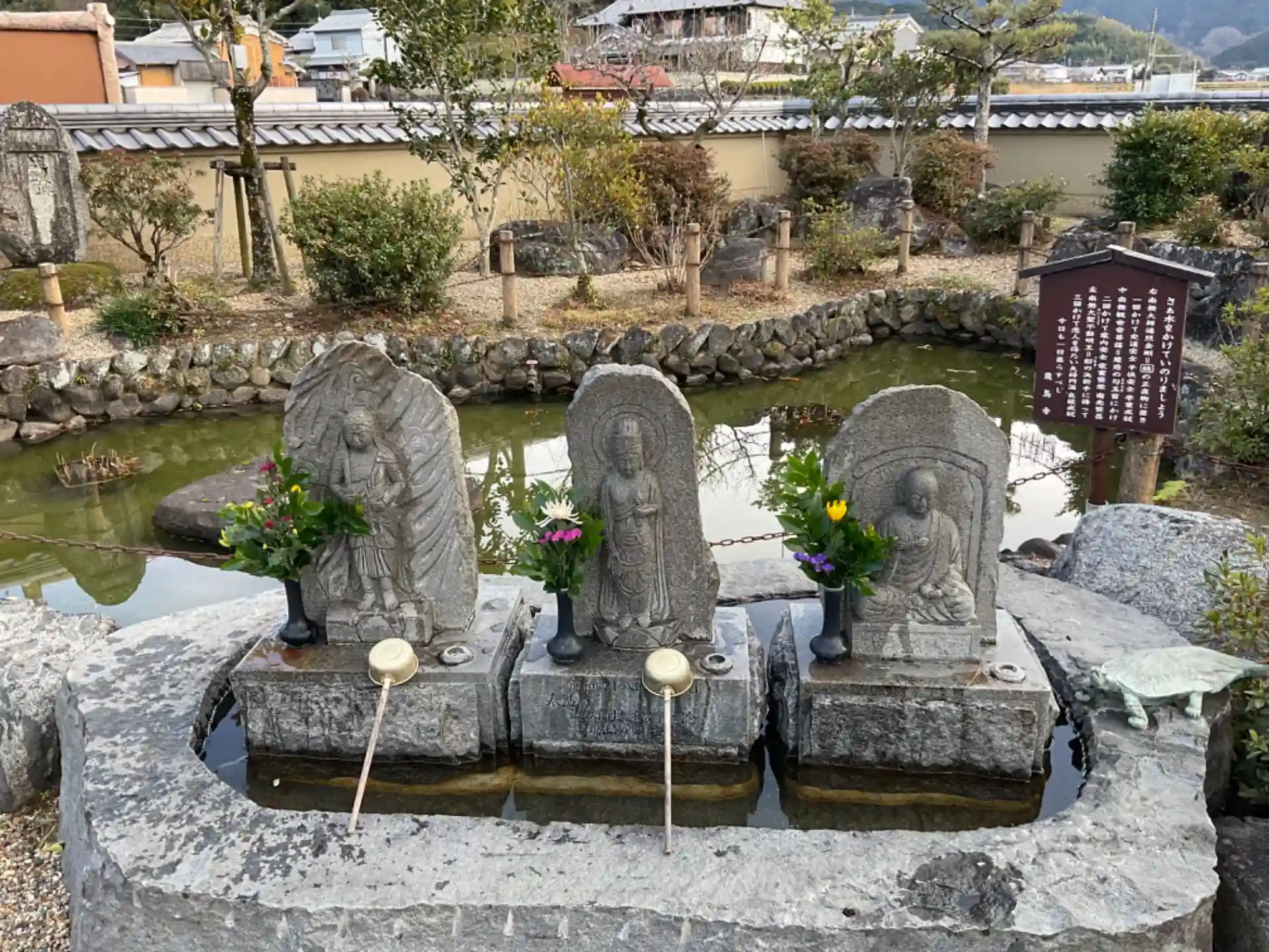 新西国第9番霊場の真言宗寺院。ご本尊は釈迦如来で「飛鳥大仏」と呼ばれています。