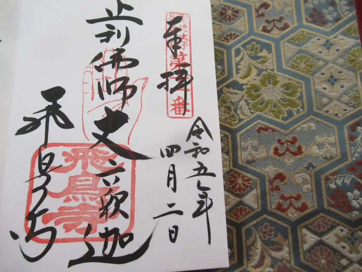 以前、飛鳥大佛の御朱印をいただいたので、今回は聖徳太子御遺跡霊場の御朱印をいただきました。