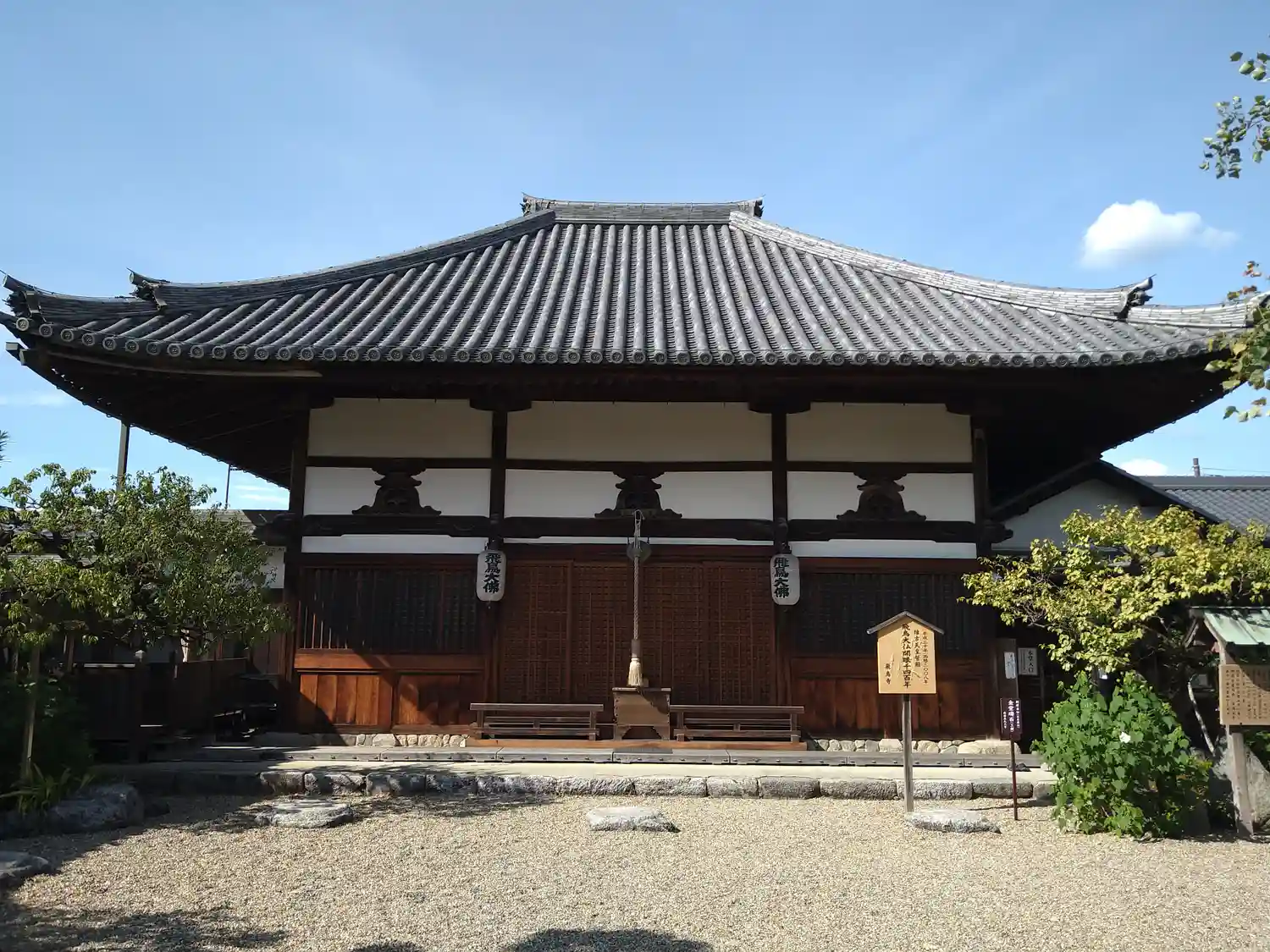 蘇我馬子の創建当初の大伽藍には及びませんが、それでも明日香の地に建つお堂は趣があります。