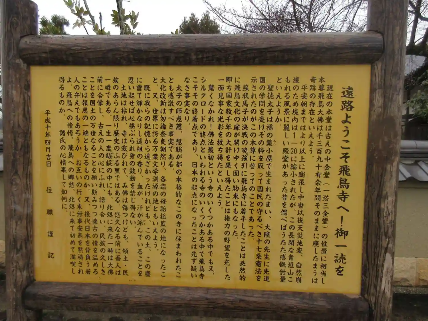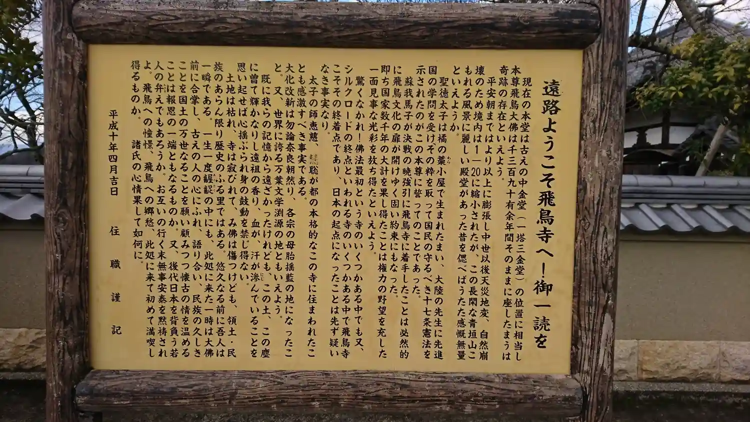 明日香へ出掛けたときの写真が出てきました。静かな境内を散策した記憶があります。当時は現在の様な立派…