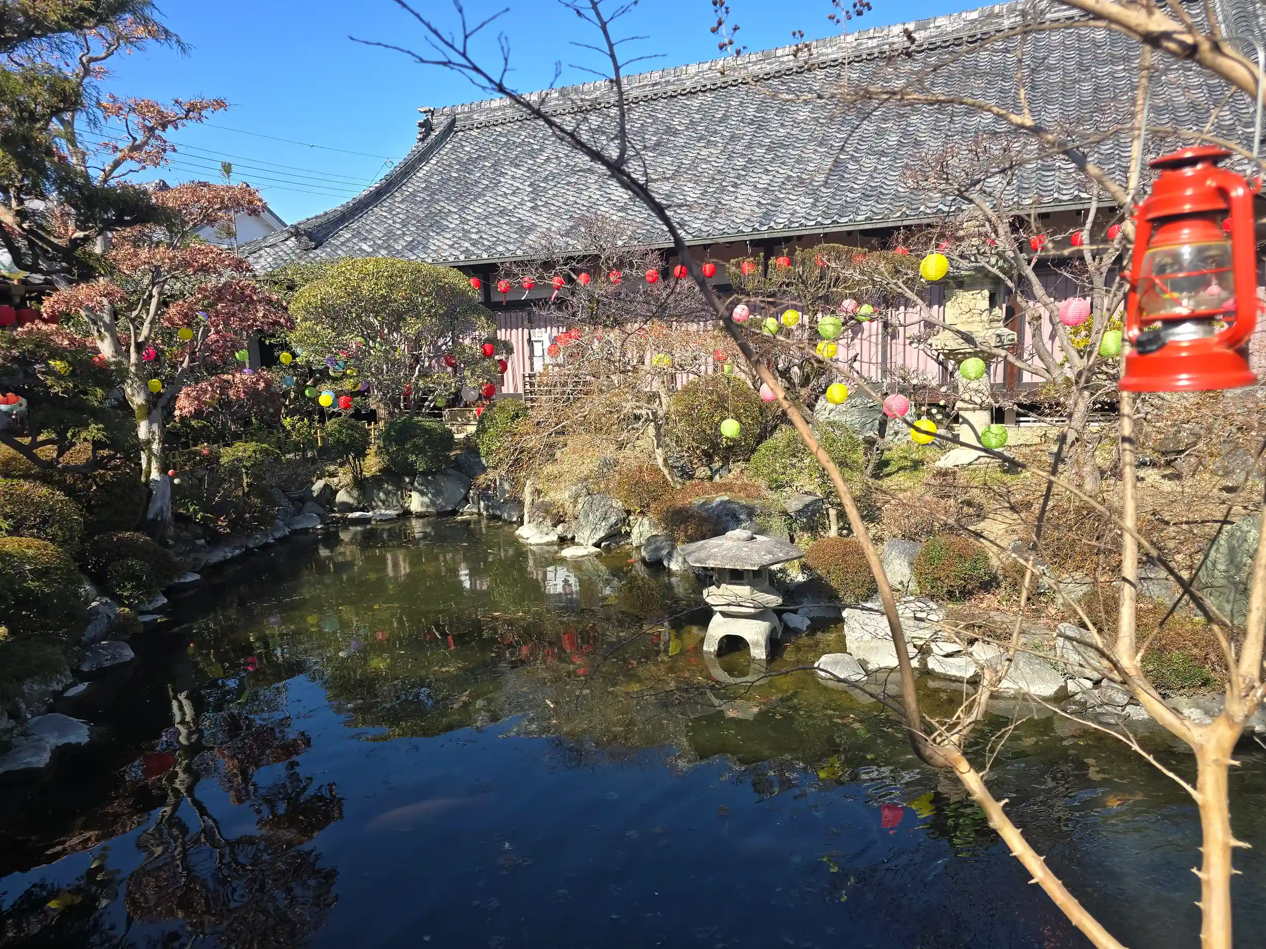 言われているカラフルな提灯が境内を彩って