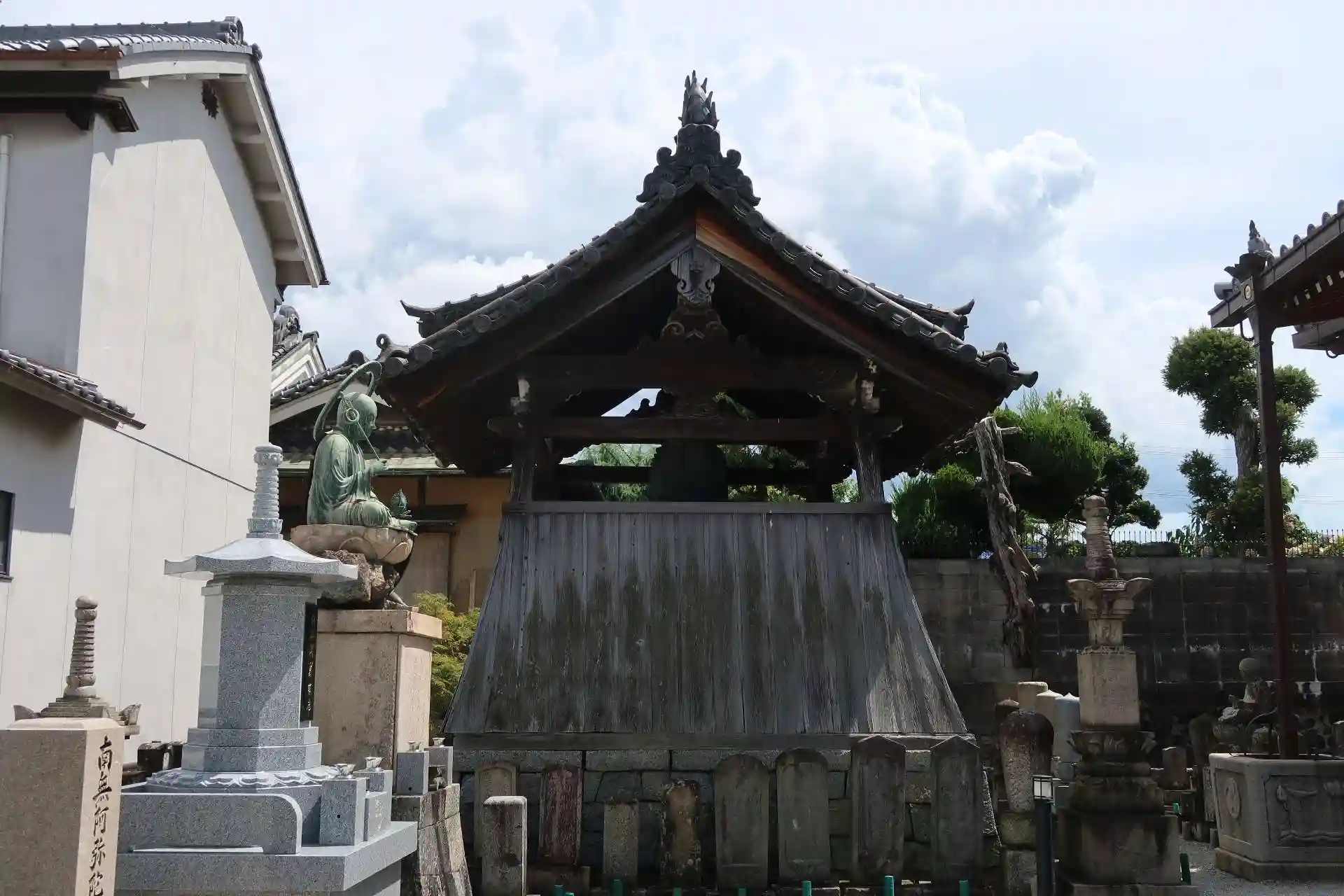 境内西側の南北の通りから東へ入ると駐車スペースがありましたので停めさせて頂きました。境内を通り抜けて、境内の北東角に山門がありましたのでマイルール通りに山門から入り直し。山門から入って直ぐ右側に玄関と客殿、左側に手水、正面に鐘楼、玄関の横に本堂です。玄関の呼び鈴を押し、拝観予約した者と伝えると本堂裏の収蔵庫へ行ってくれと。対応頂いた方がお若いのでてっきりご住職の娘さんかと思いましたが奥様でした。早速、収蔵庫の扉を開けて頂き、庫内に入ってゆっくり観て下さいと。撮影禁止の貼り紙がありましたが、ご住職から特別に撮影許可を貰ってあるとの事でとても有難かった。(先代のご住職の時は檀家さんにしか公開しておらず、現住職になってから一般客にも公開する様にしたそうです。)