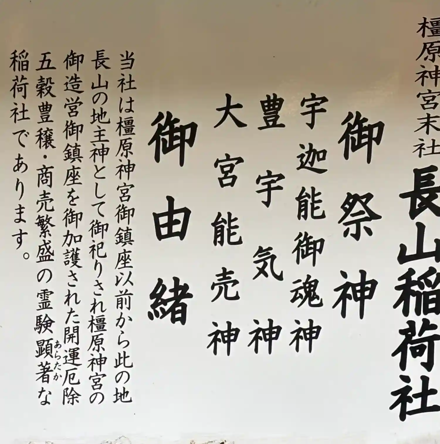 | 読み方 | ながやまいなりしゃ(かしはらじんぐうまっしゃ) |