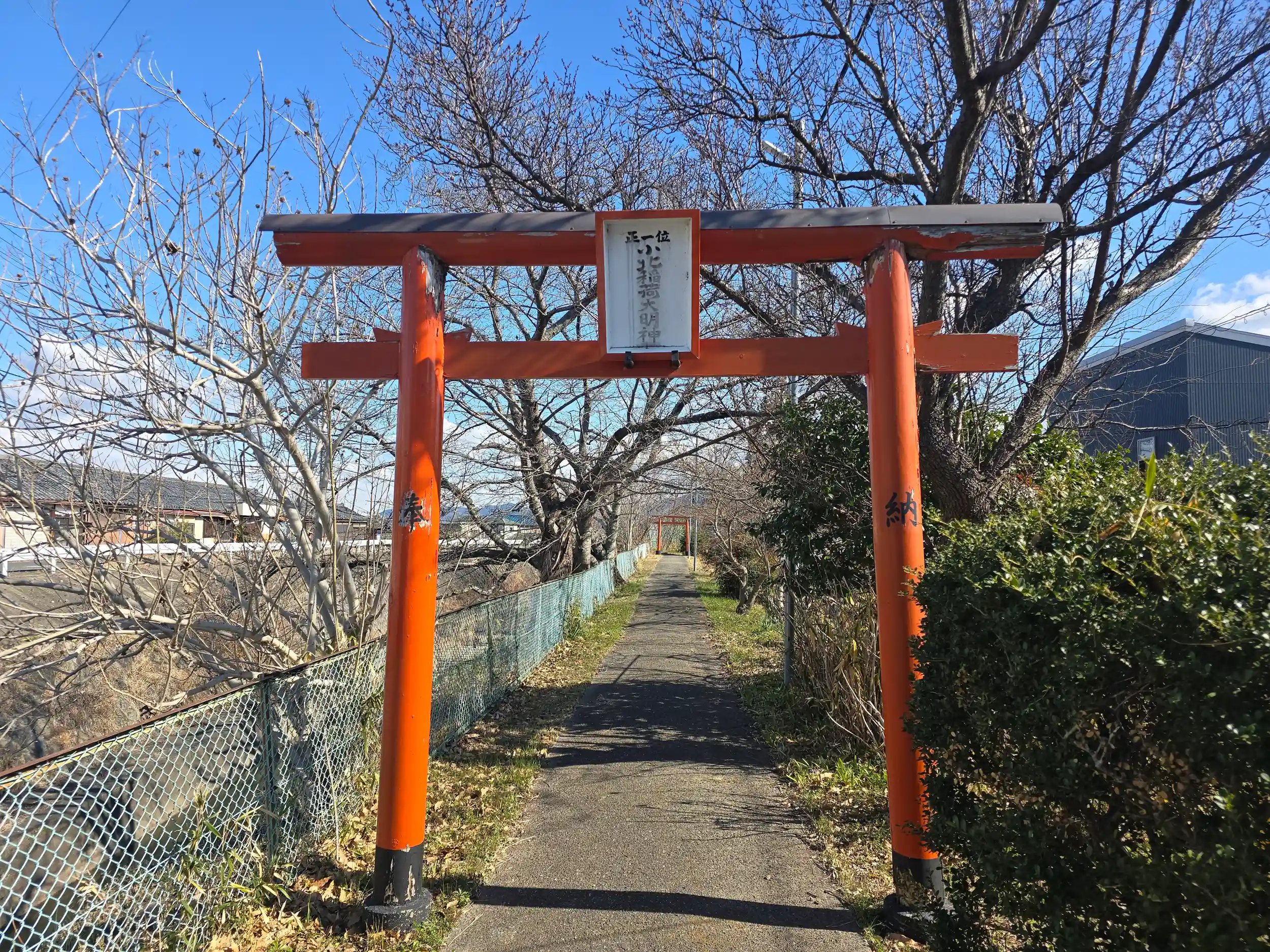 南へ歩いて飛鳥川を渡ると小北稲荷大明神様が