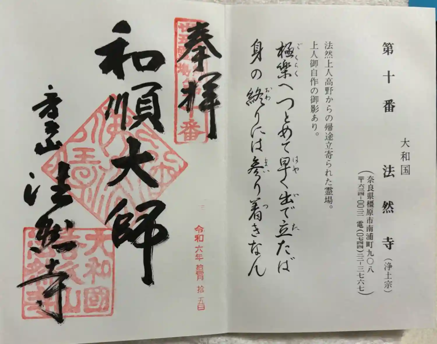 | 法然上人二十五霊場 第10番 | 御詠歌: 極楽へ つとめて早く 出で立たば 身の終りには 参り着きなん |