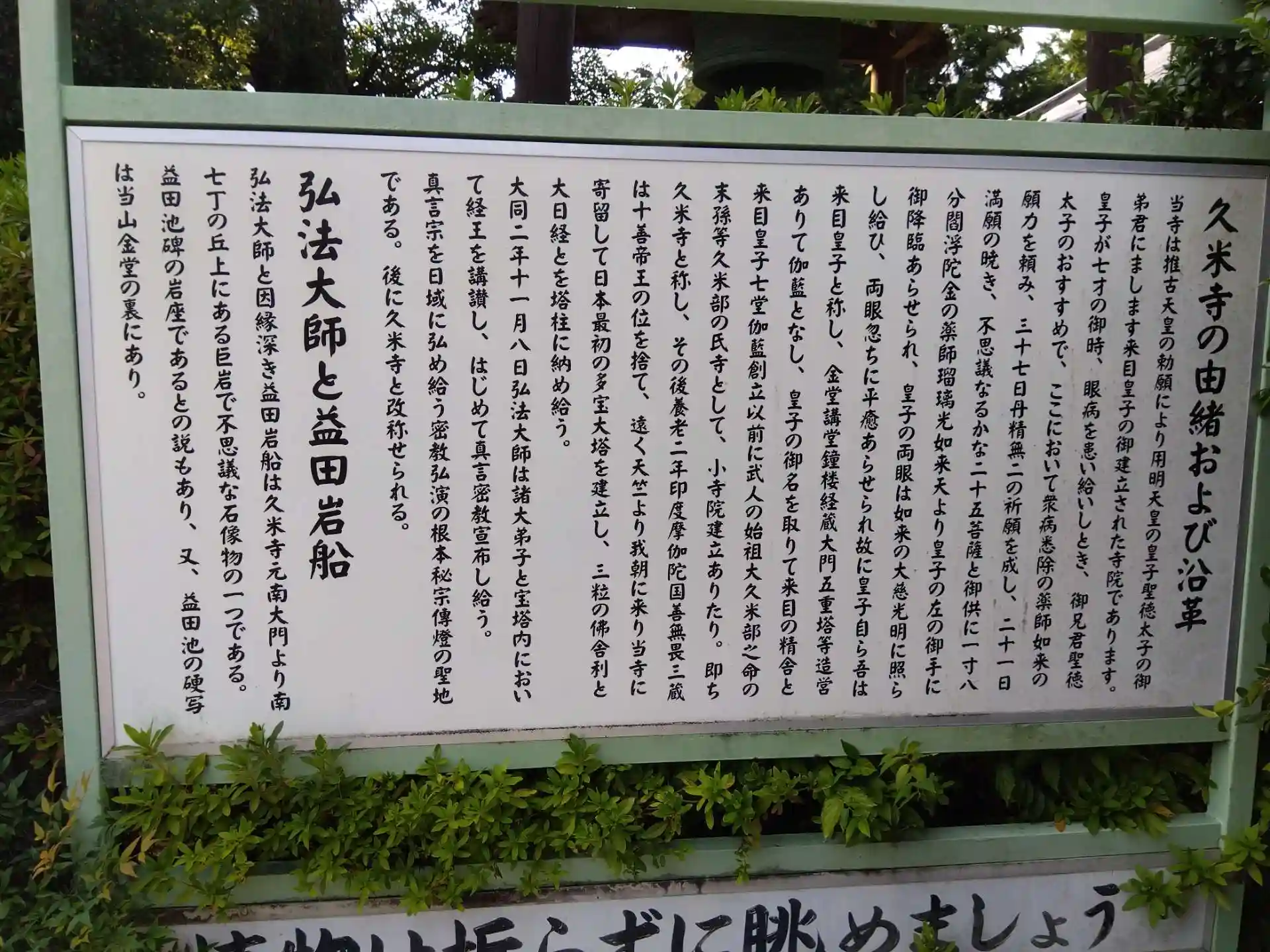 聖徳太子の弟・来目皇子の創建とも伝わり、ちょっと愉快な久米仙人伝説もあります😄