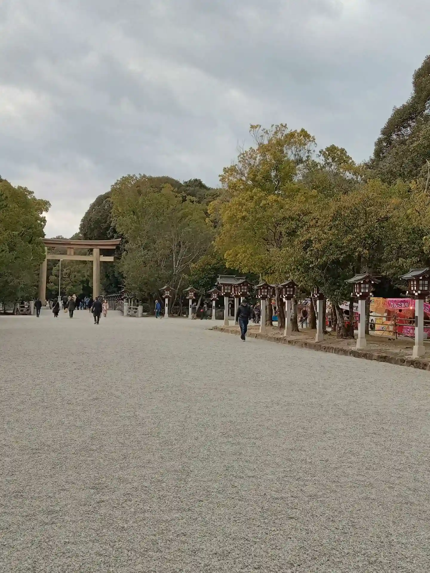 とにかく広い境内です。今にも降ってきそうな空模様。