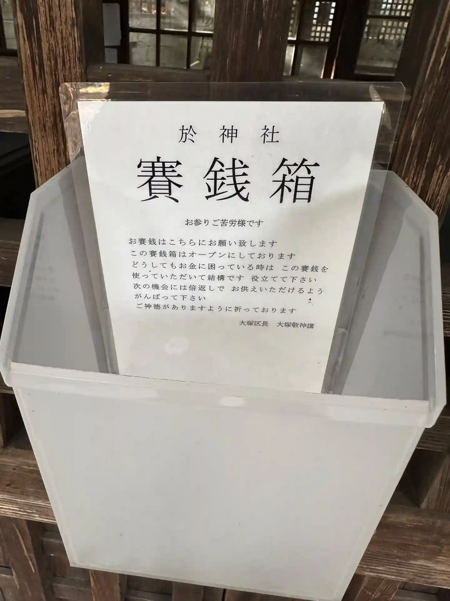 珍しくお金に困っている人は持って行って構わない、ただし倍にして返しにきてくださいと神社ながら仏のような寛容な御心が記されています。