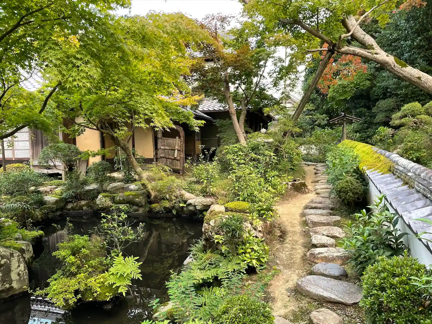 4月には牡丹が咲き誇るお庭があります。とても広いです。