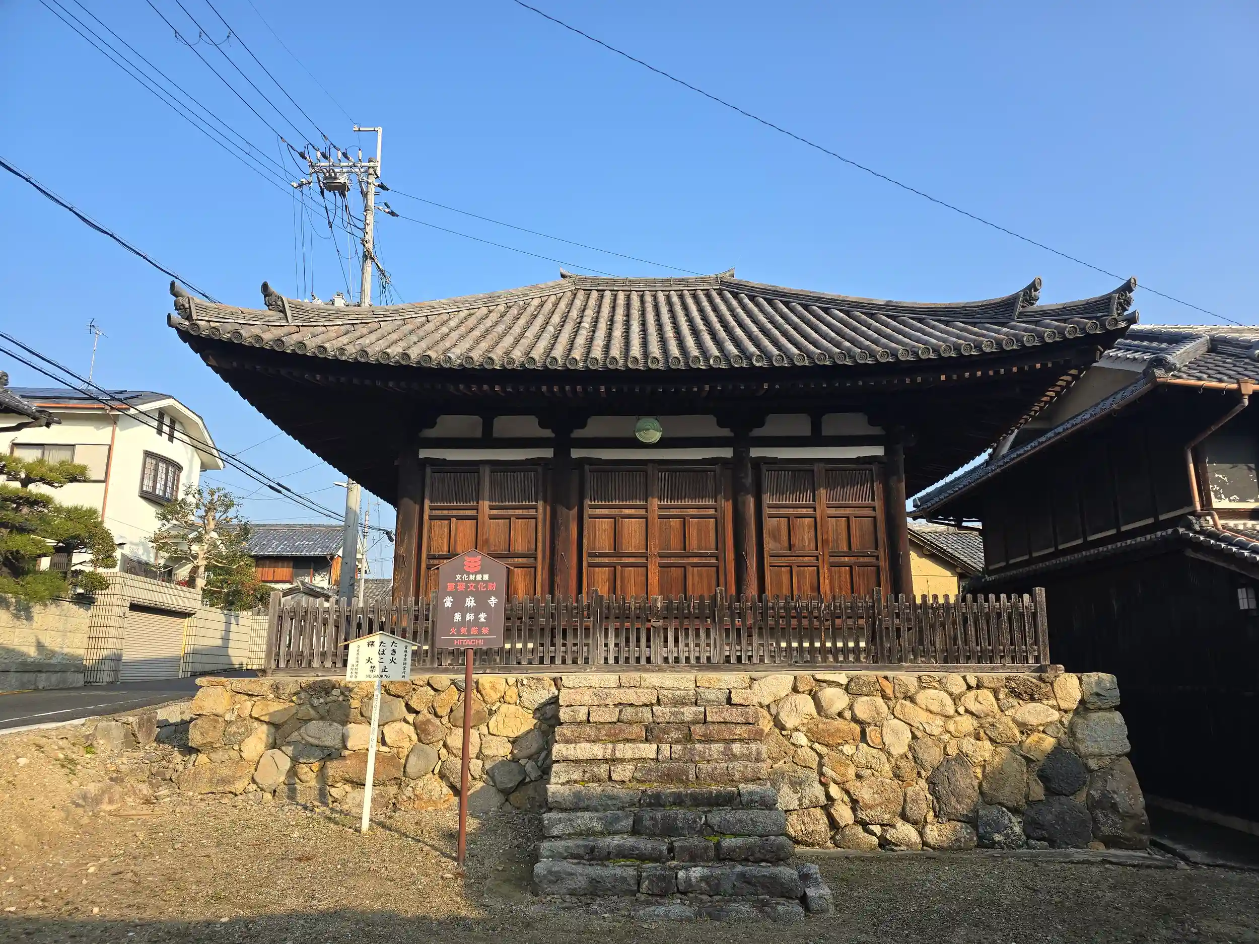 お堂の脇の駒札を確認すると「當麻寺 薬師堂」と