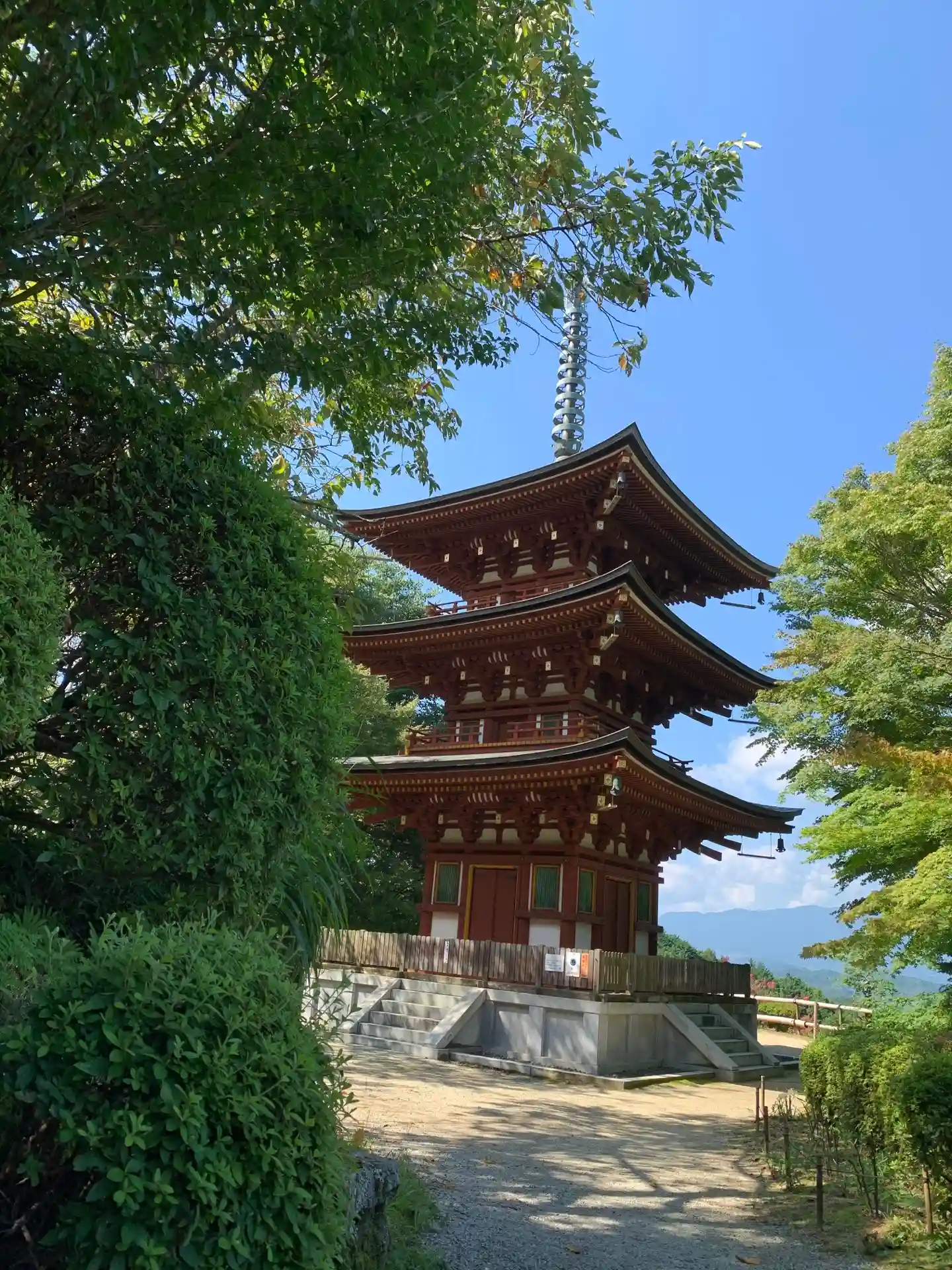 結構きつい坂を登ると三重塔が見えてきます。