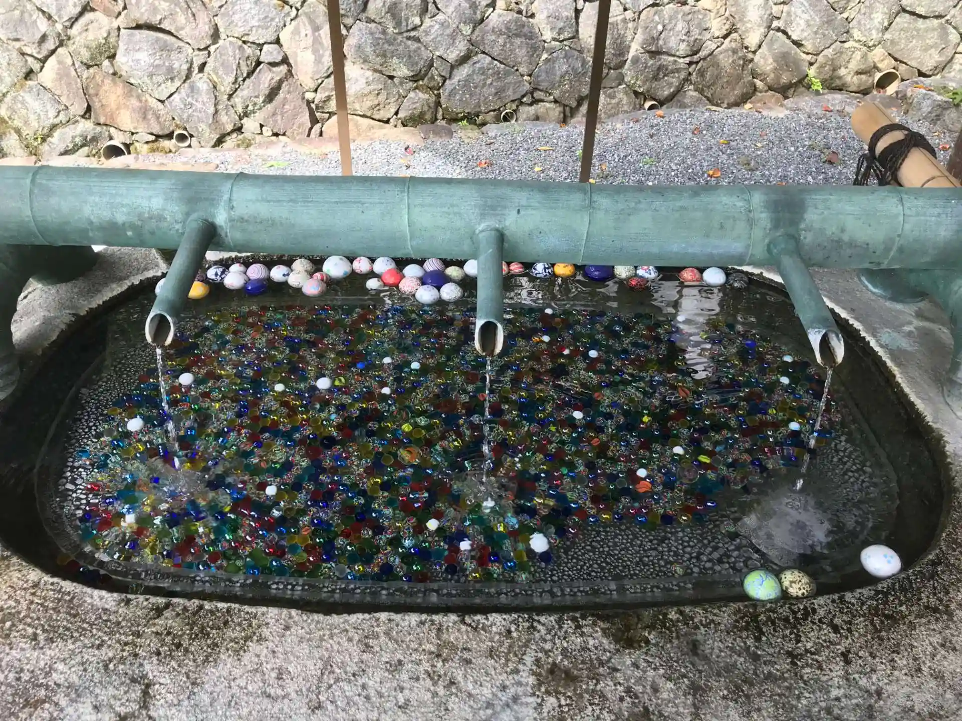今日は手水にビー玉が沈められていた。残暑が厳しい中、一服の涼を感じることが出来た。