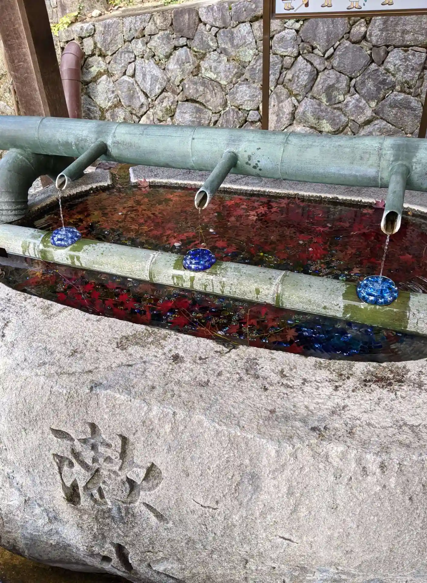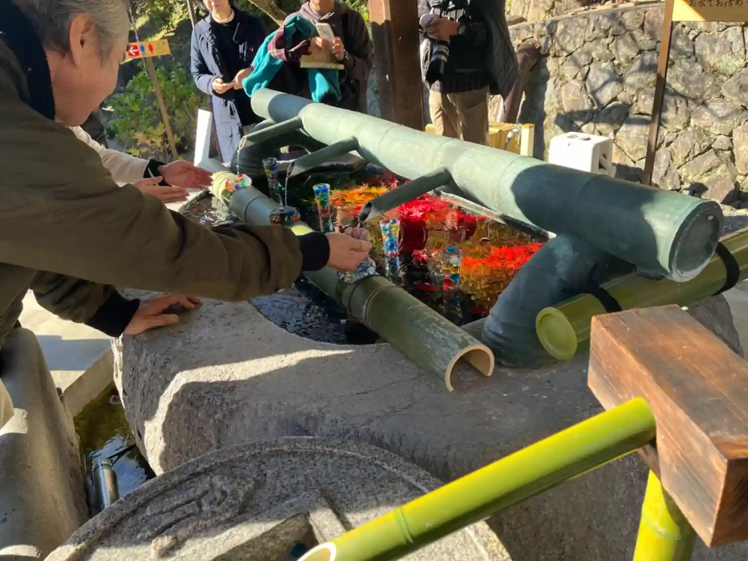 今日は青紅葉と赤紅葉で飾りつけられた紅葉手水だった。