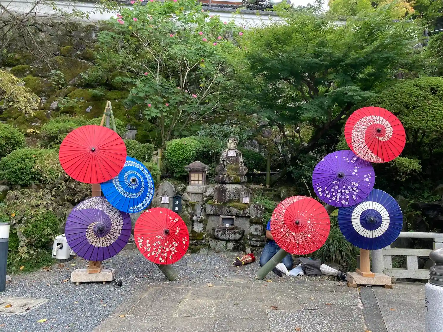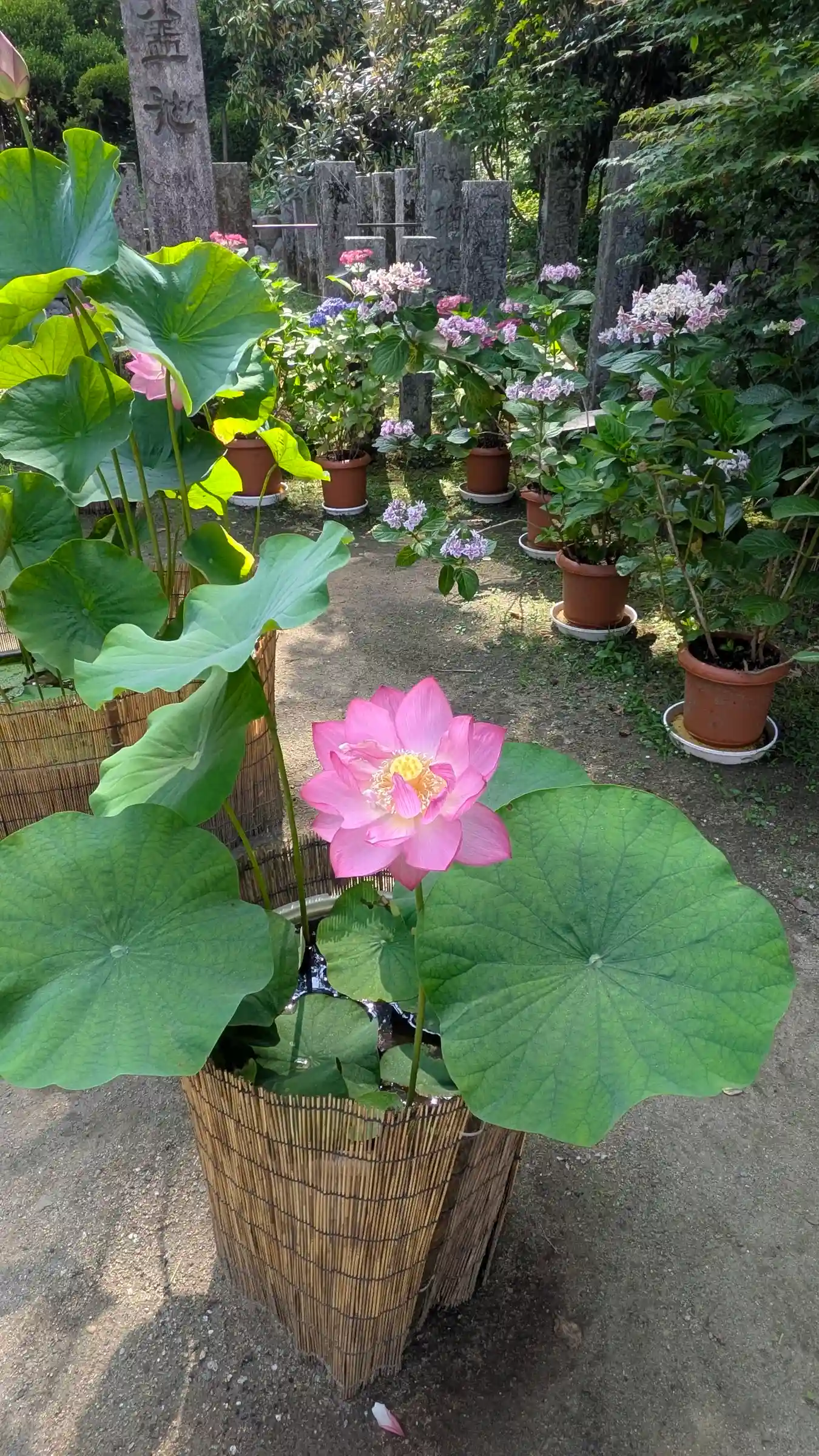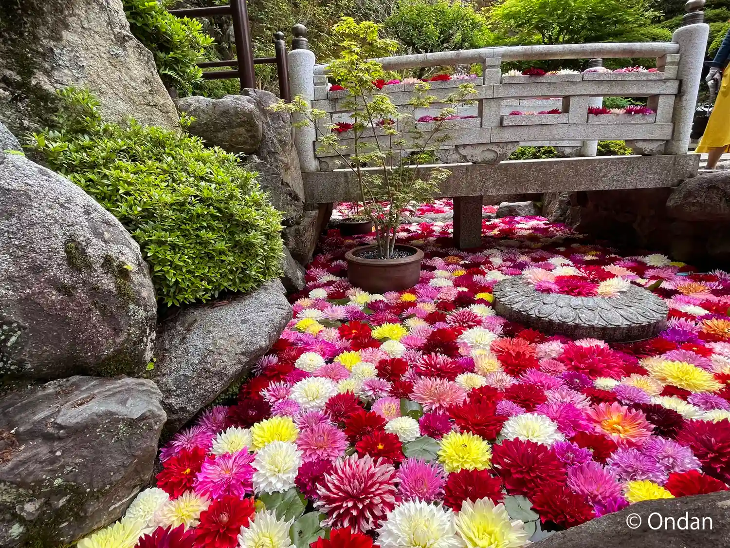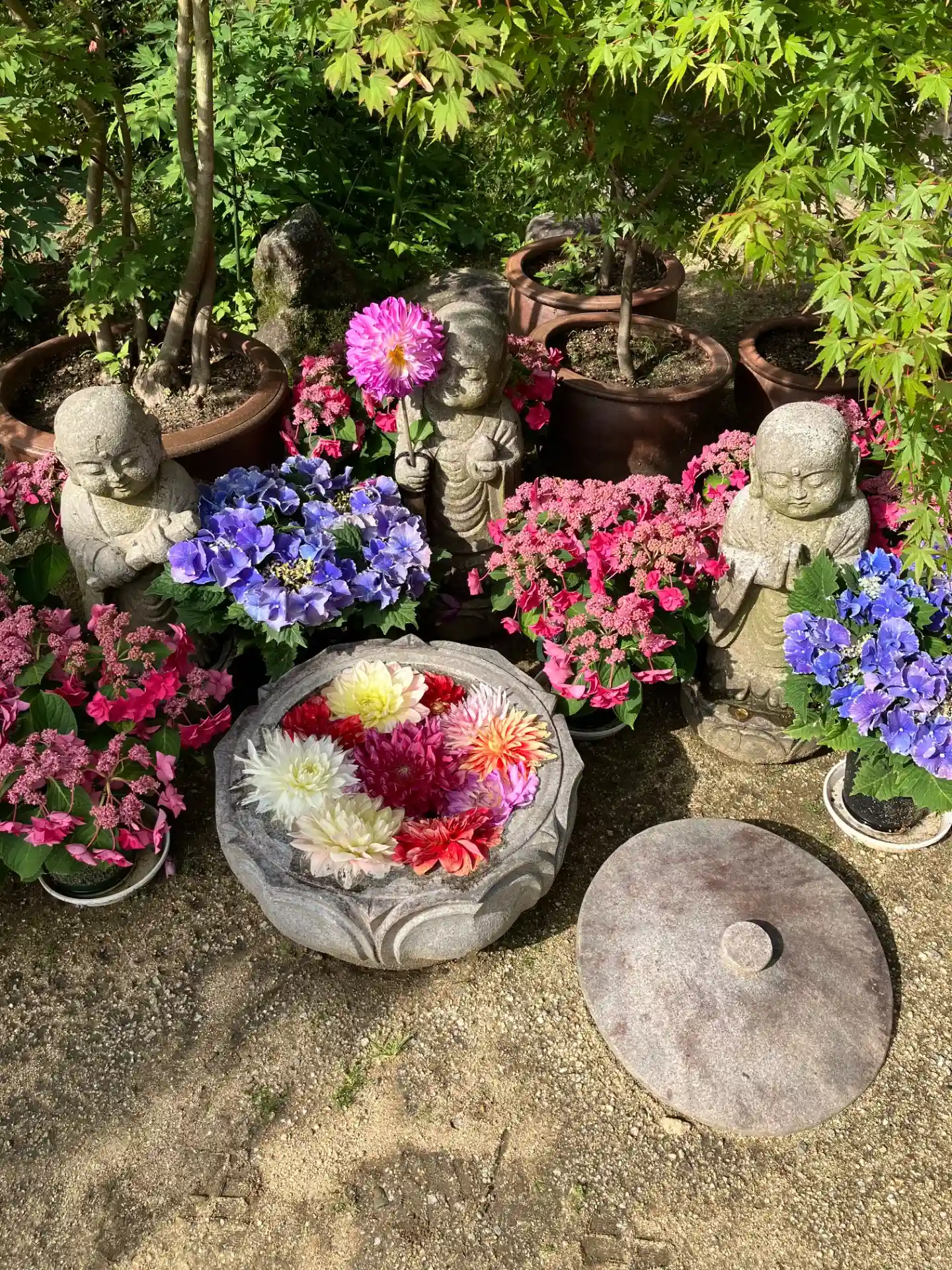こちらは花で色々楽しませてくれるが、今日は灯篭まわりが花でデコ…