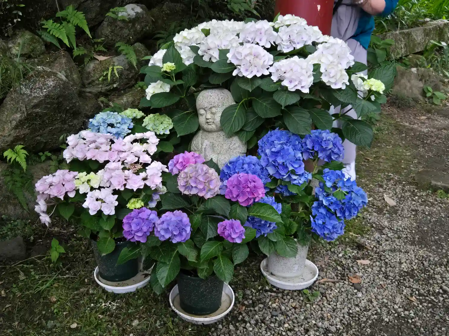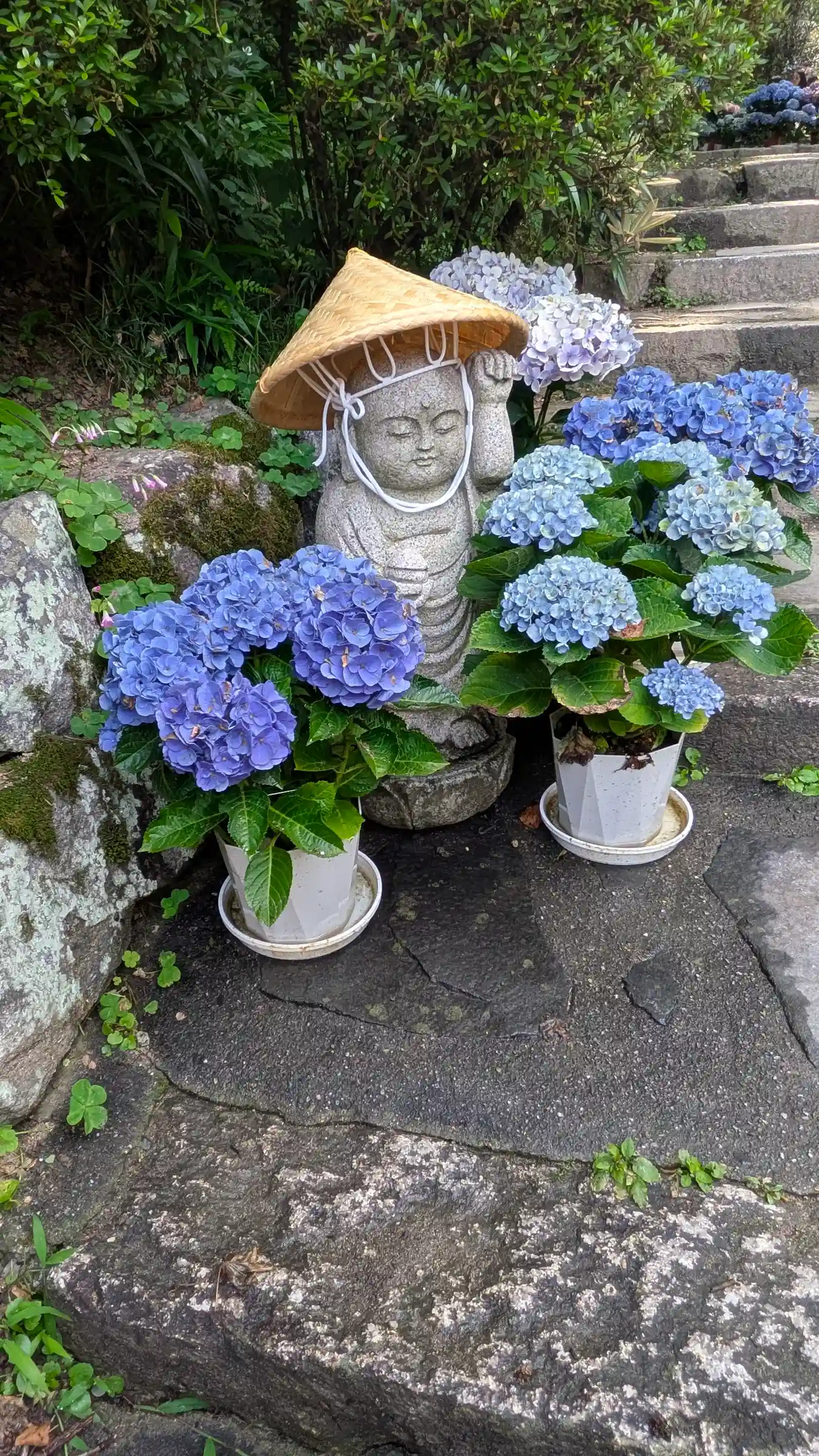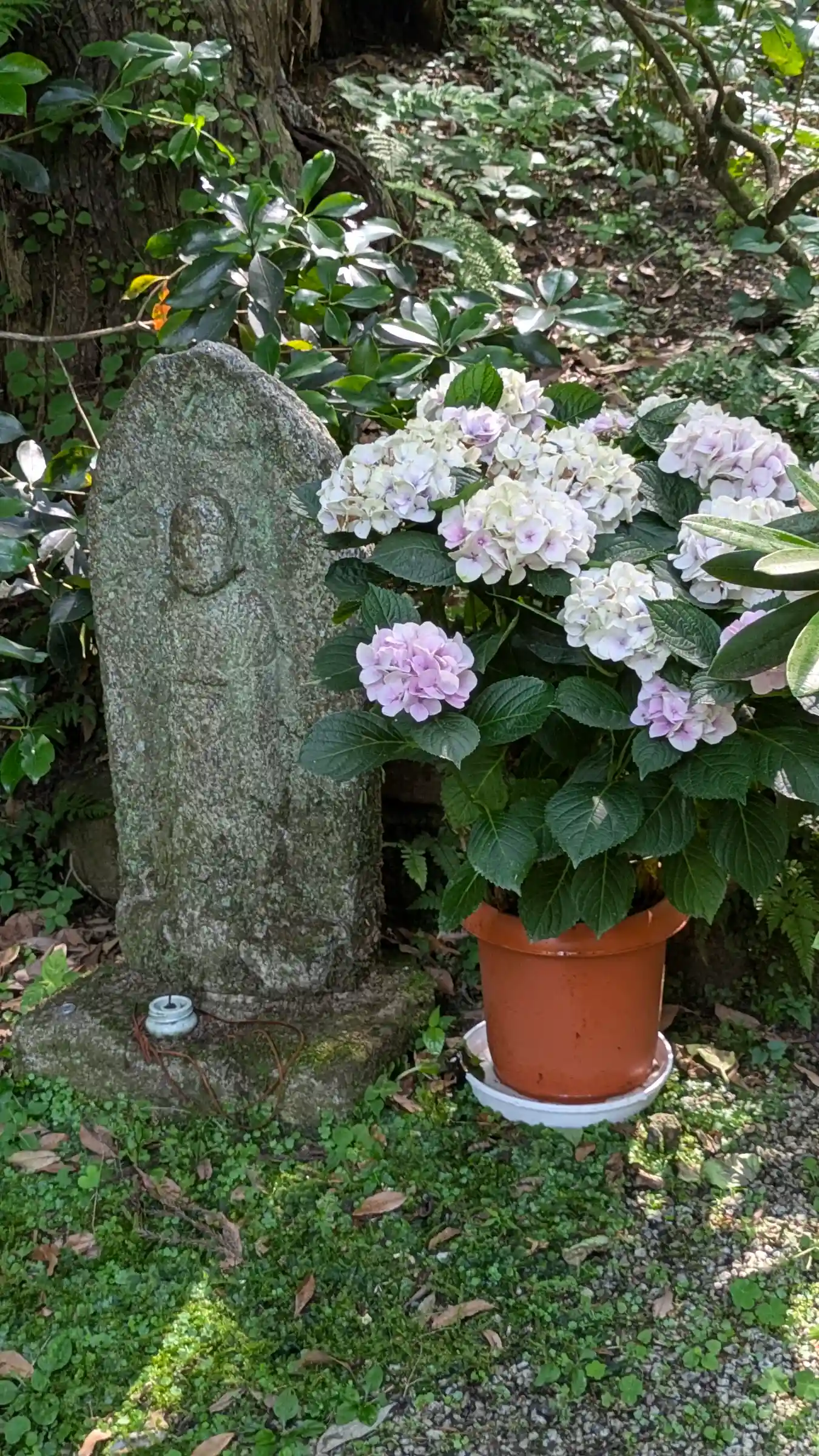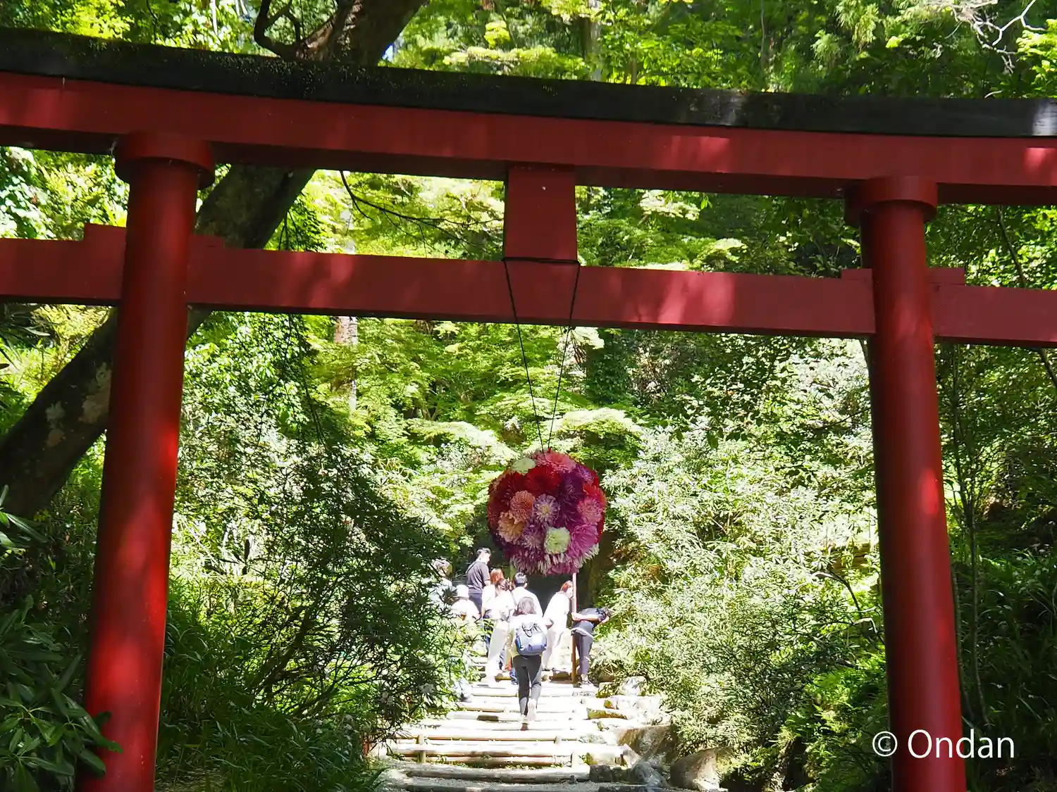 こちらは花で色々楽しませてくれるが、今日は灯篭まわりが花でデコ…