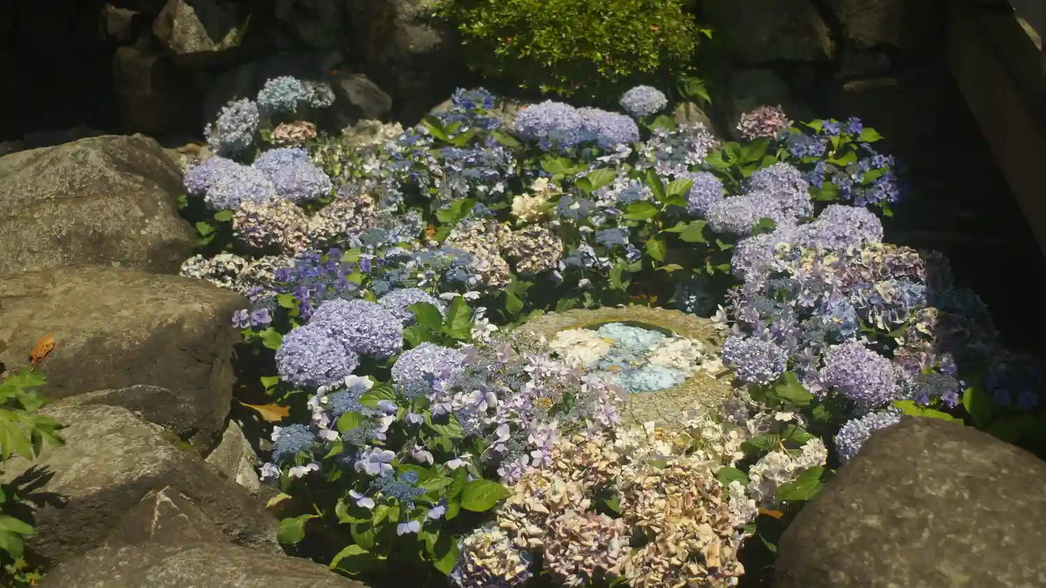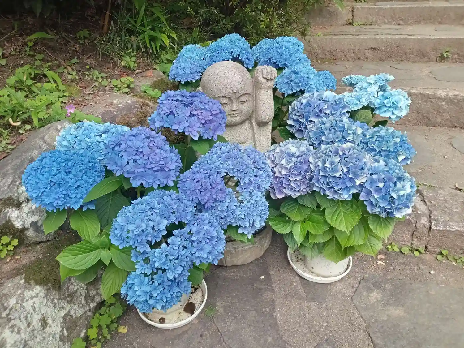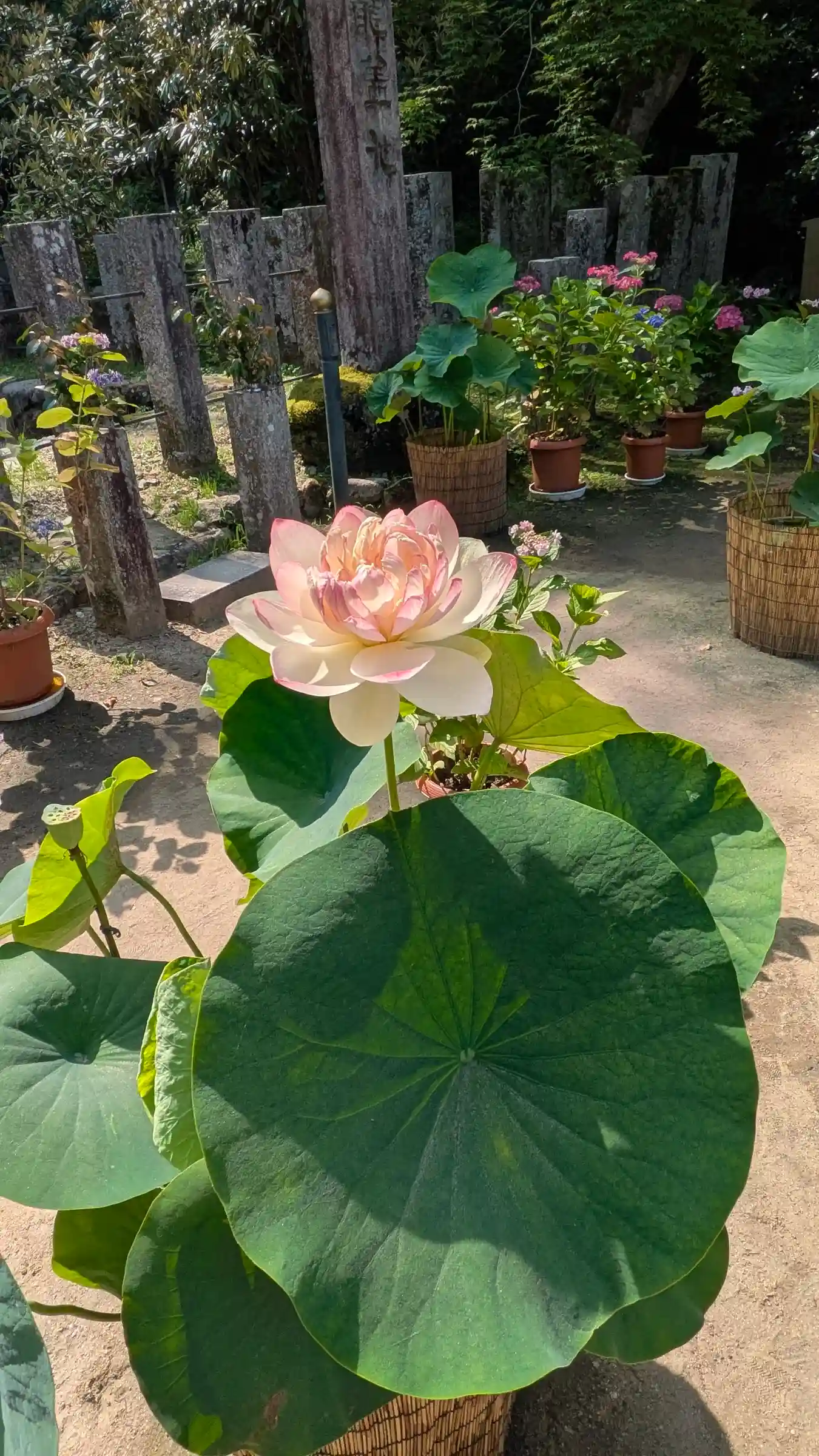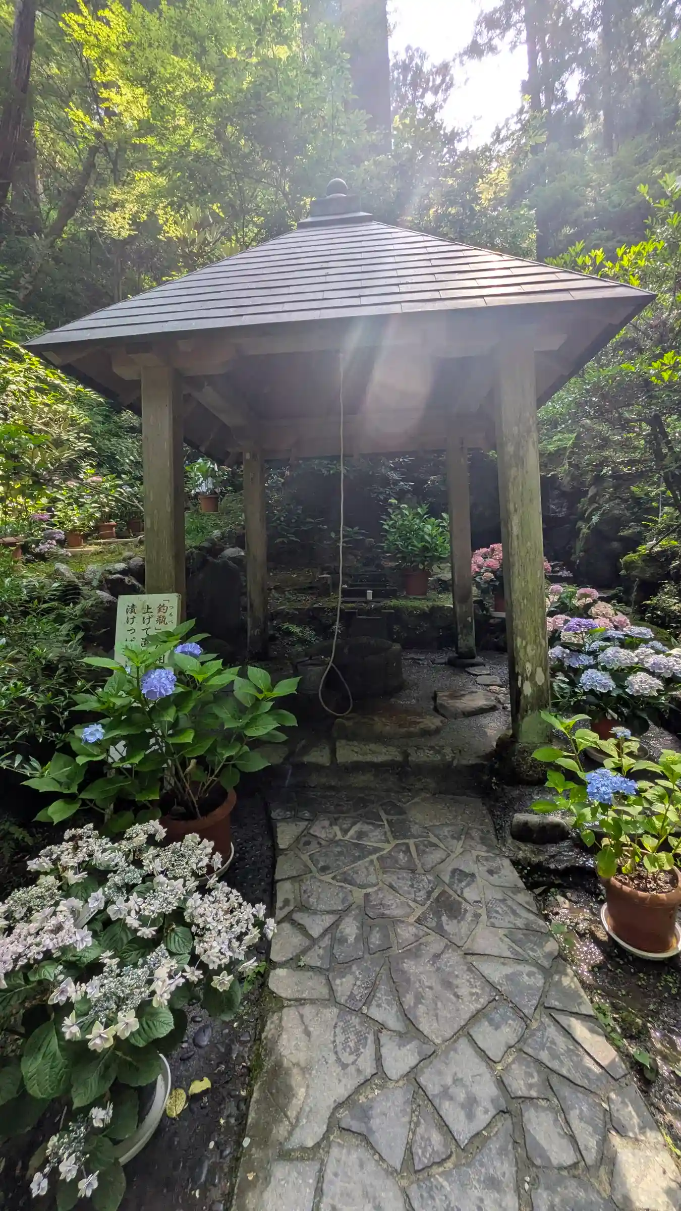 こちらは花で色々楽しませてくれるが、今日は灯篭まわりが花でデコ…