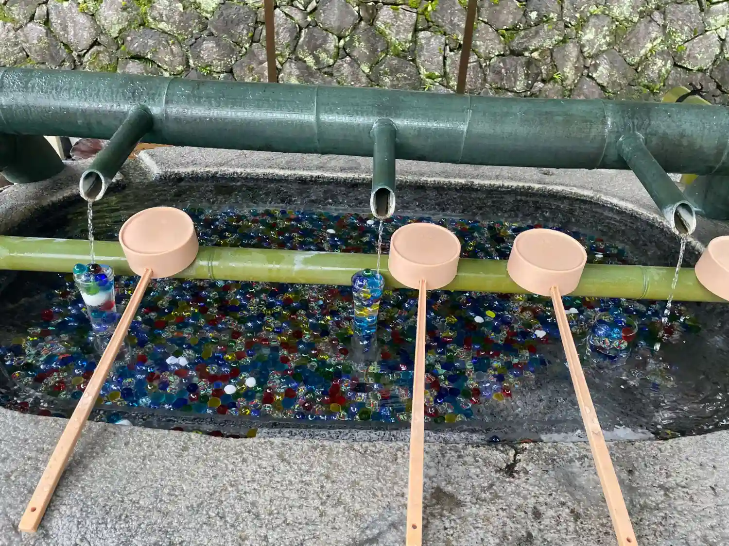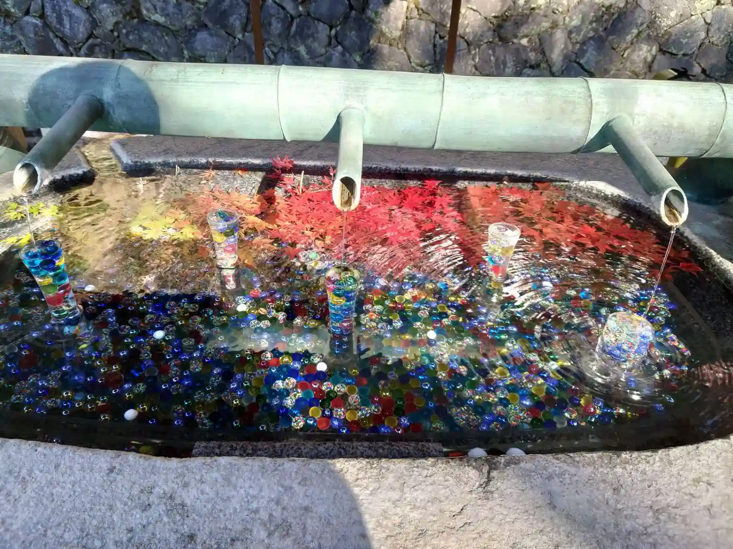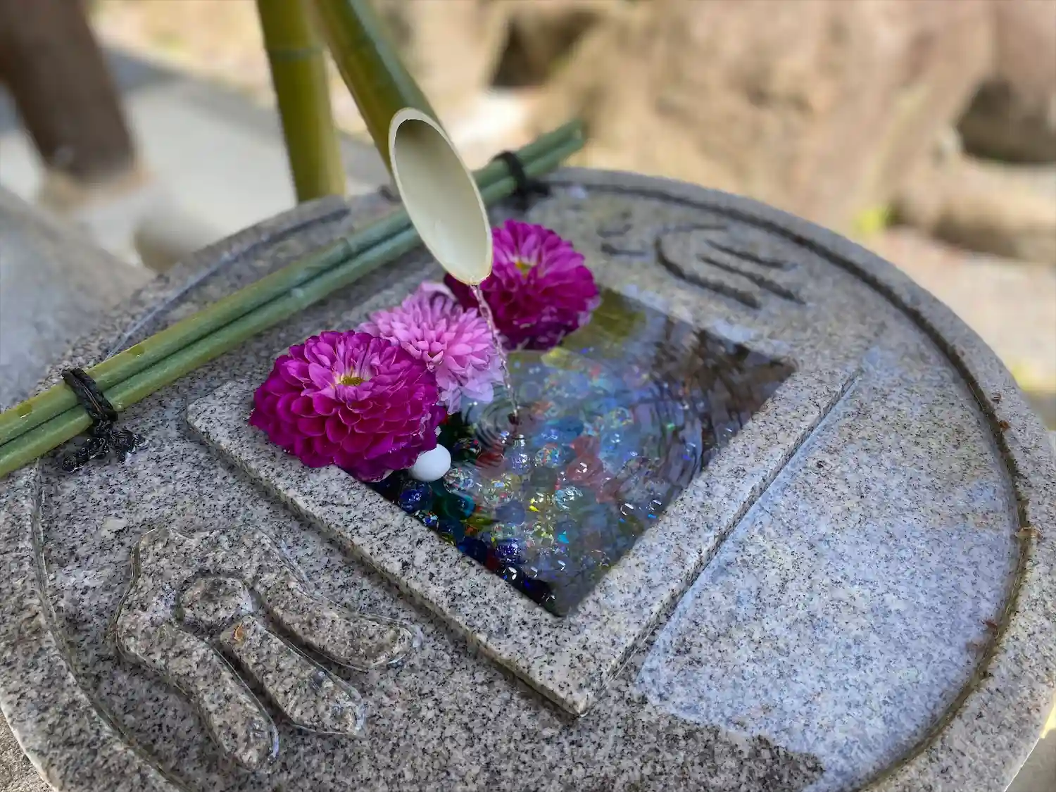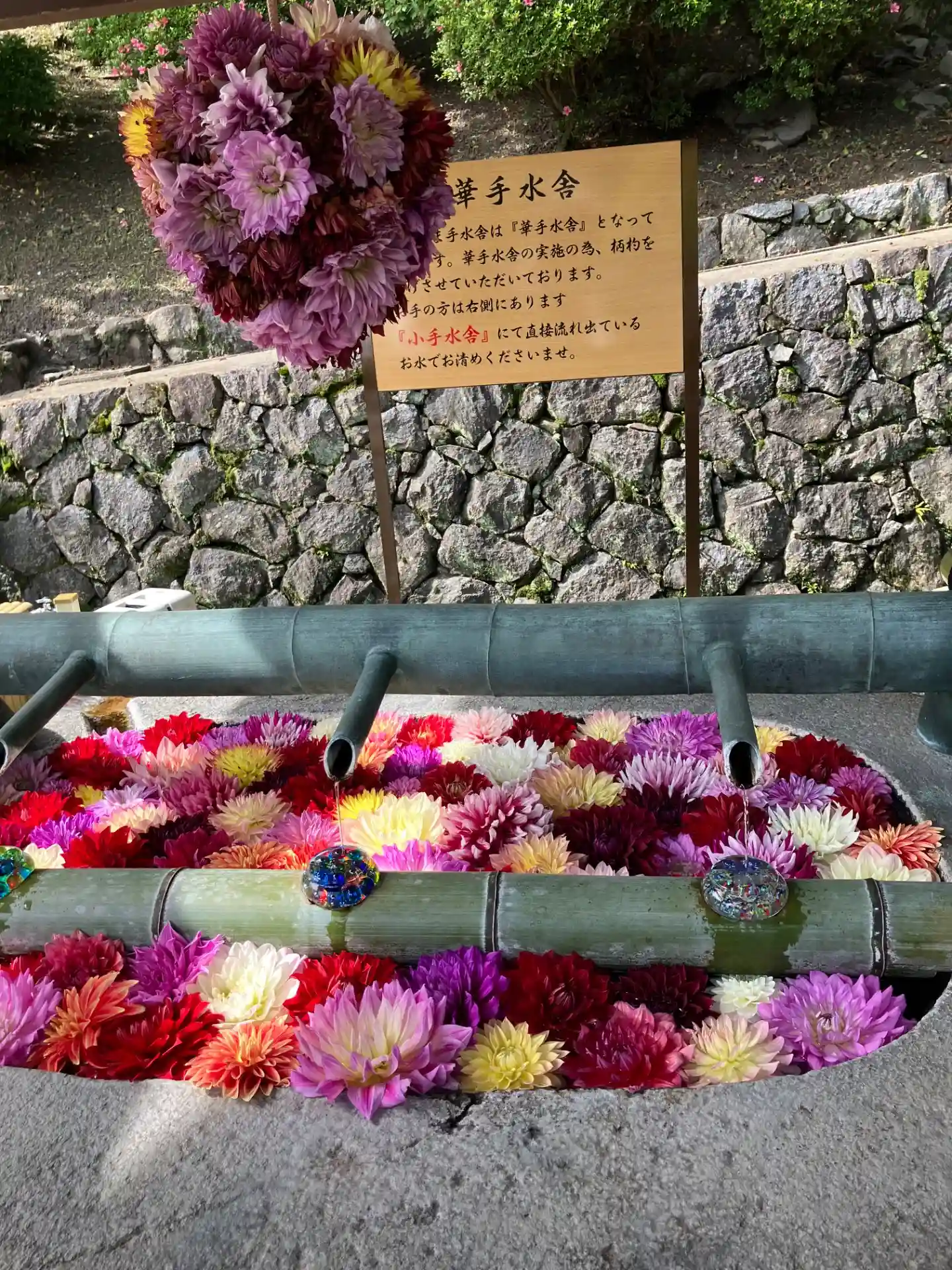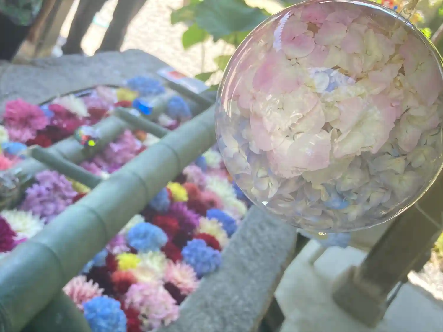 そして花手水で有名なお寺。夏はビー玉がキラキラしていて…
