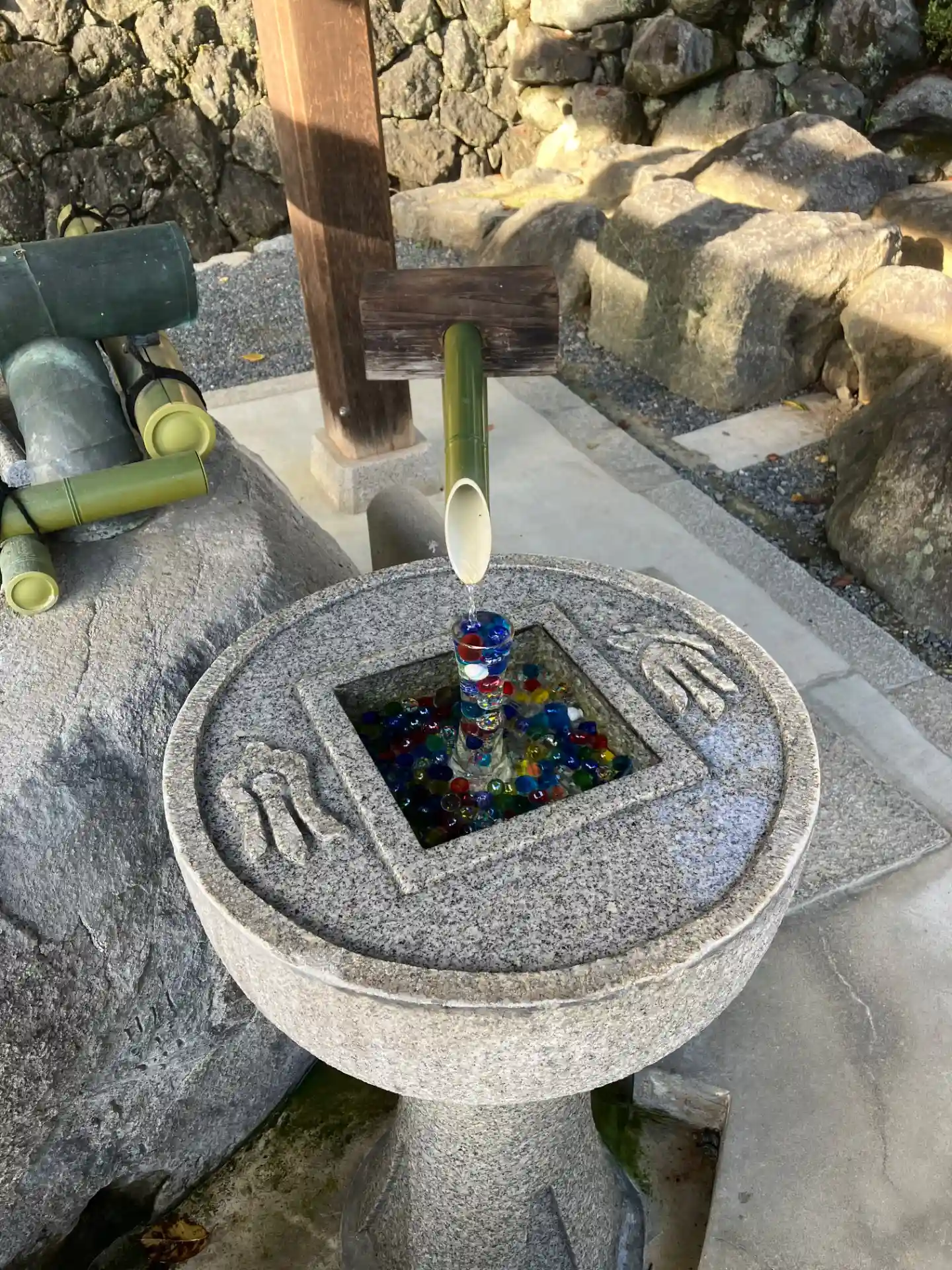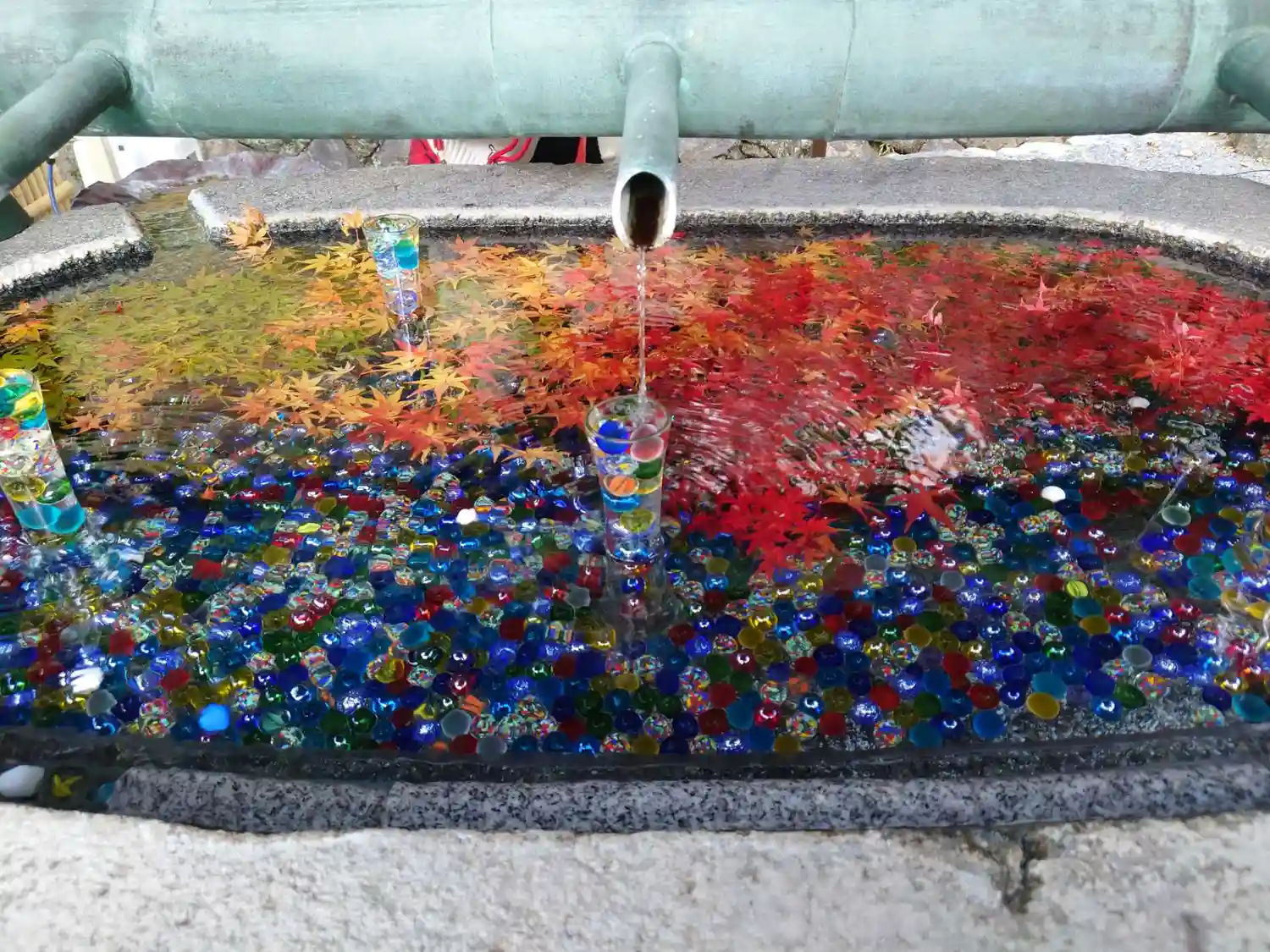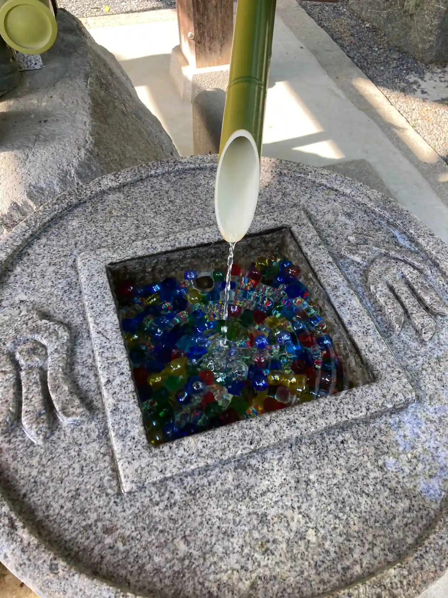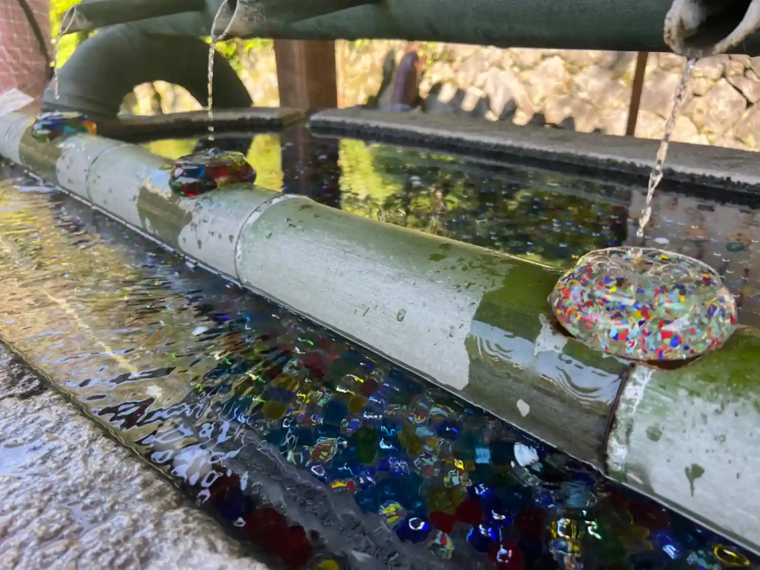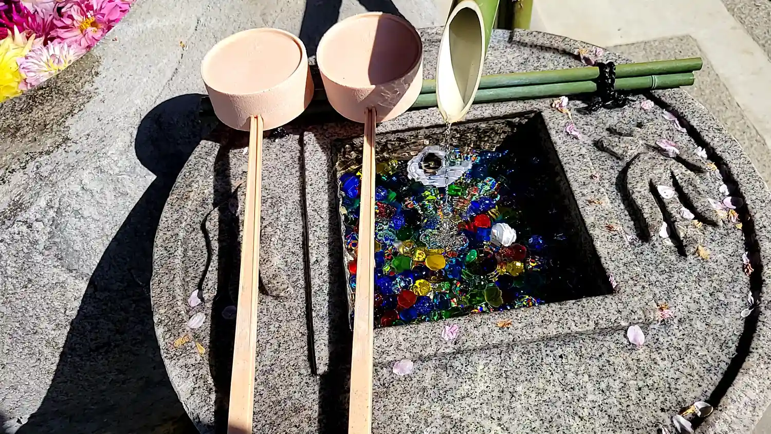そして花手水で有名なお寺。夏はビー玉がキラキラしていて…